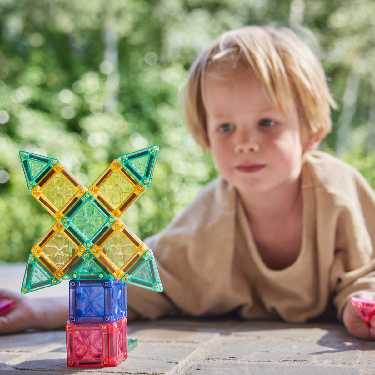 Cleverclixx ist die belgische Marke für innovative Magnetbausteine. Ob Pastell- oder Knallfarben, Kugelbahnen oder magnetische Rennbahnen – die Sets wachsen mit dir mit. Du erkennst sie am Stern in der Mitte jeder Platte.