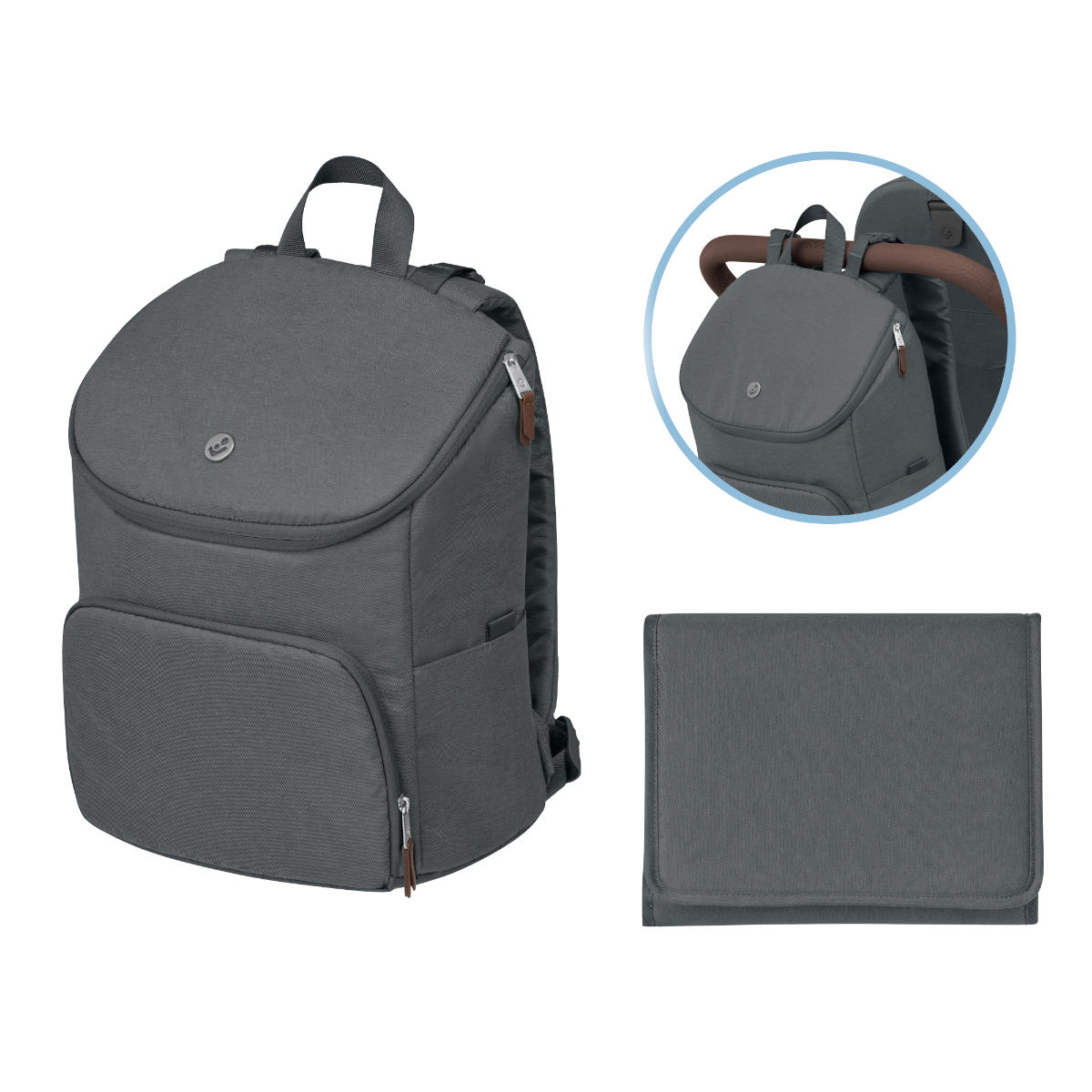 Der Wickelrucksack überzeugt mit viel Stauraum, bequemen Trageriemen und einer integrierten Wickelunterlage. Perfekt für den Alltag – einfach am Kinderwagen befestigen oder lässig tragen.