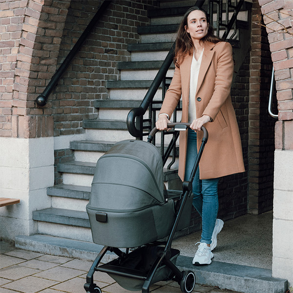 In manchen Fällen kannst du deinen Kinderwagen im 2-Rad-Modus verwenden. Das Gestell wird so gefaltet, dass die Vorderräder eingezogen sind und du den Kinderwagen auf 2 Rädern ziehen kannst. Beispiele sind der Cybex Priam, Bugaboo Fox2 und der Bugaboo Cameleon3 Plus Kinderwagen. Dies hat den Vorteil, dass diese sich leicht durch Sand und Schnee bewegen können.