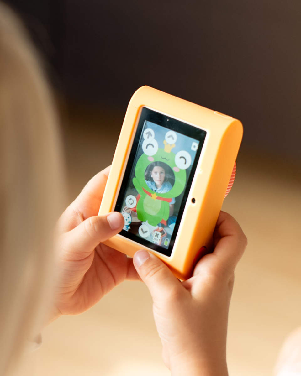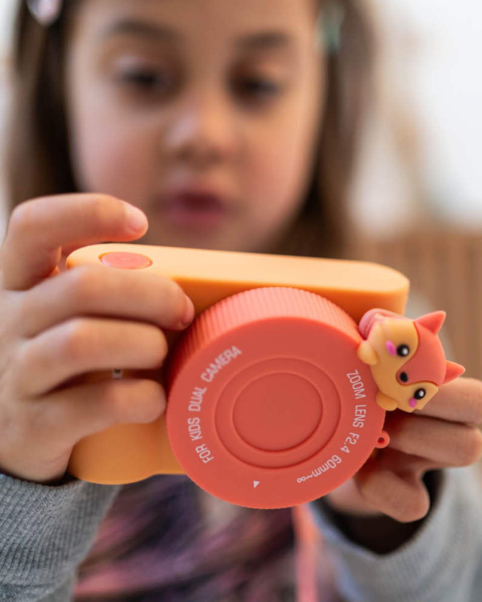 Die tierförmige Linsenabdeckung schützt die Kamera und sorgt gleichzeitig für einen coolen Look, den Kinder lieben.