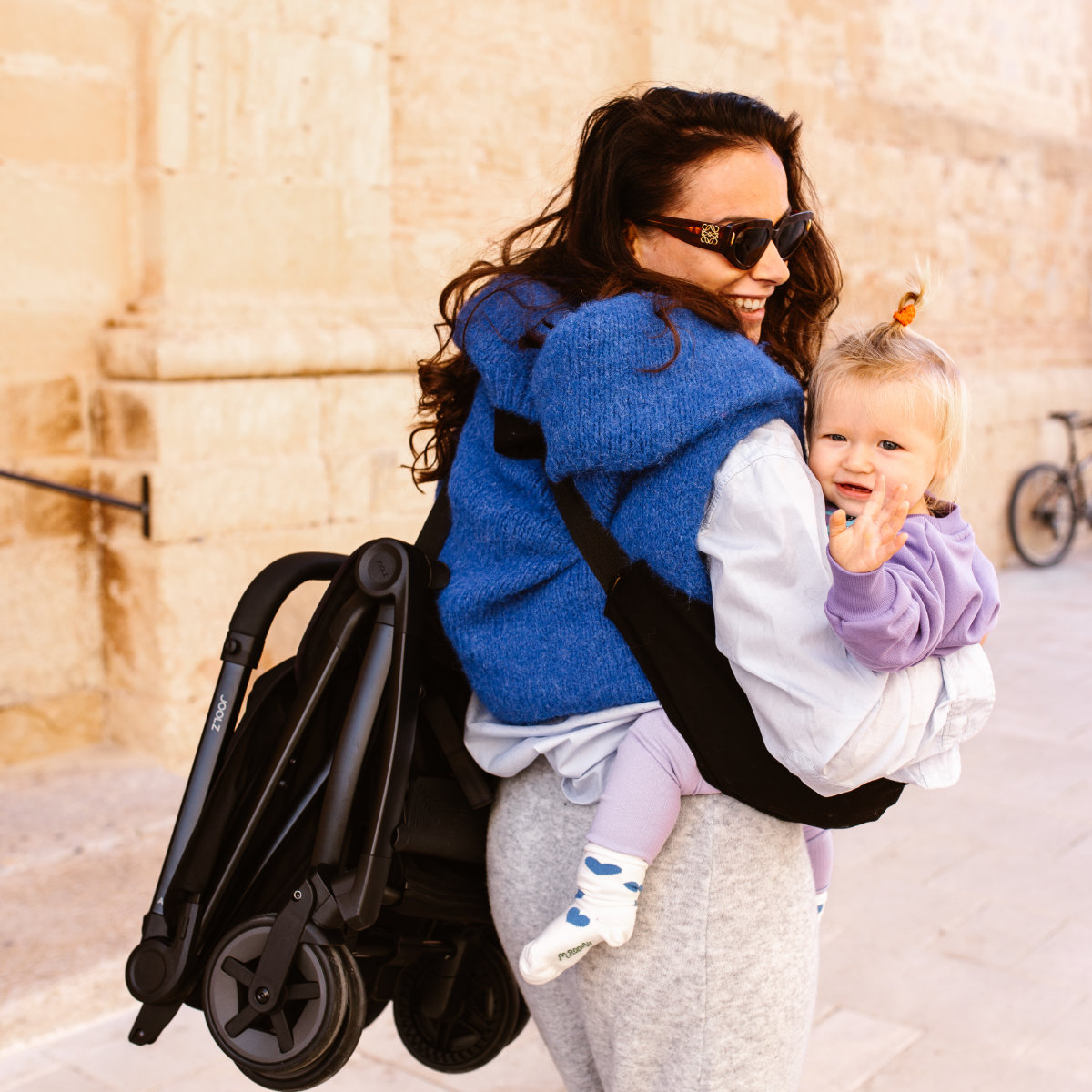 Besonders in Situationen, in denen ein Buggy an seine Grenzen kommt, zeigt die Tragehilfe ihren Vorteil. Enge Wege, Treppen oder kurze Strecken lassen sich so deutlich einfacher bewältigen.