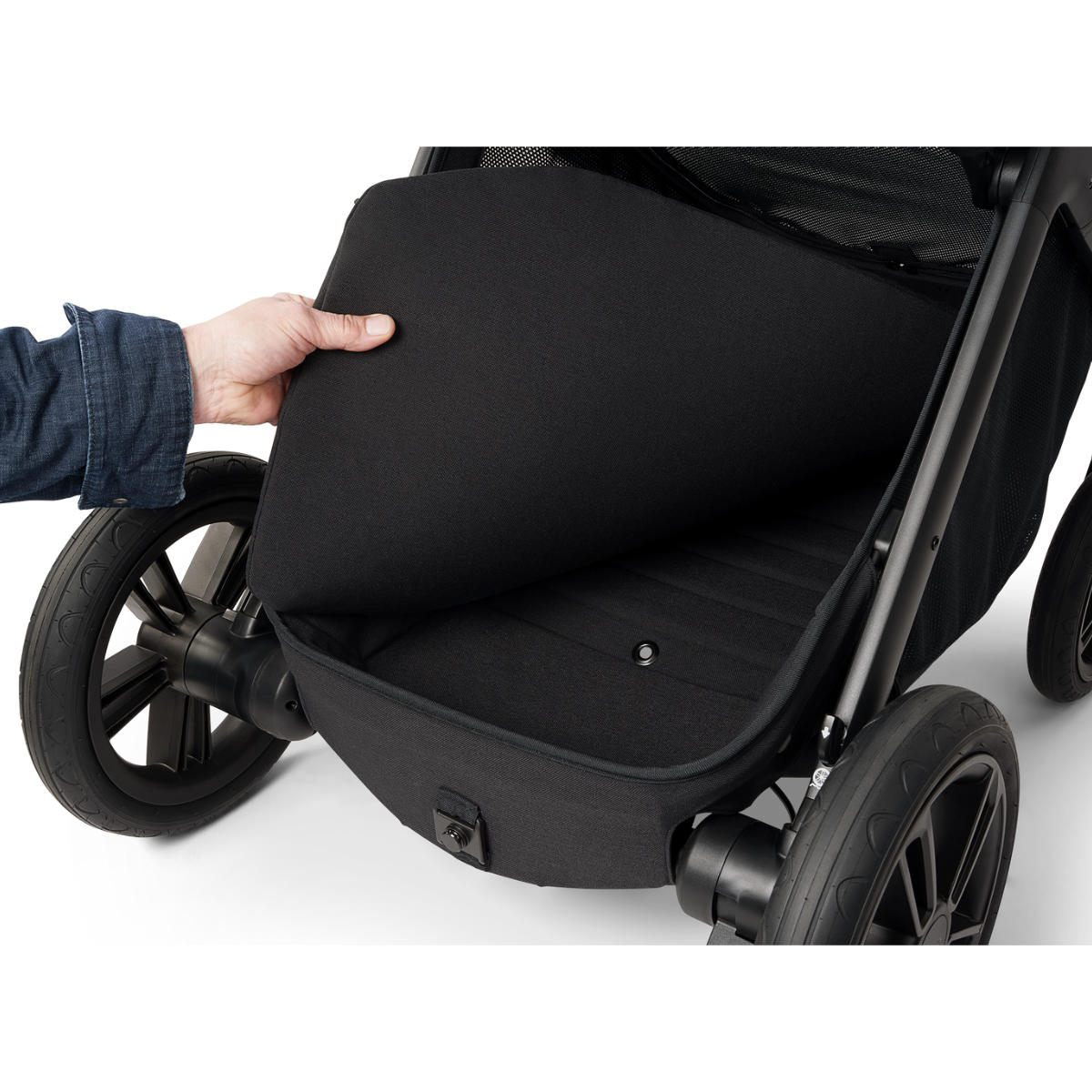 Dein Kind genießt Geborgenheit in edlen, besonders weichen Textilien. Die entnehmbare Sitzeinlage aus feiner Merinowolle sorgt für ein optimales Wohlfühlklima. Dank der erhöhten Sitzposition von 61 cm genießt ihr eine besondere Nähe – ideal für den Austausch und schonend für deinen Rücken. Der Allwettersitz ist für jede Saison gerüstet: wärmend im Winter und angenehm kühl durch Mesh im Sommer.