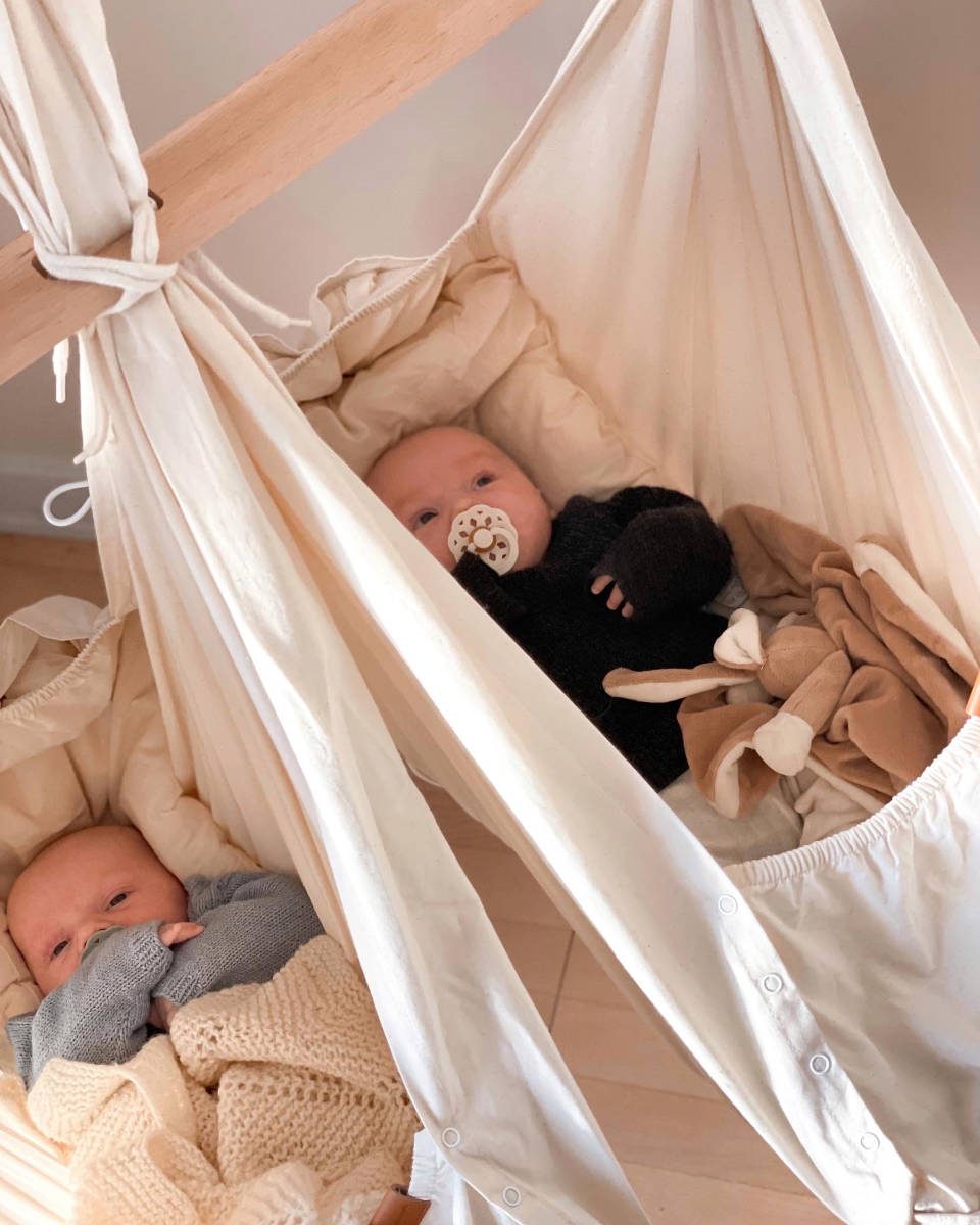Eltern von Zwillingen haben meist beide Hände voll zu tun – und das wortwörtlich. Das Membantu Basic Set Twin erweist sich hier als echter Retter im Alltag. Uns überzeugt die erstklassige Qualität der ökologischen Textilien verknüpft mit modernster Technik. Dass der Antrieb per App kontrolliert werden kann, gewährt einen Komfort, den man im fordernden Alltag nicht mehr missen möchte. Es bildet die ideale Einheit aus Tradition (Federwiege) und Fortschritt (LeeLo02). Ein absolutes Must-have für ein entspanntes Familienleben mit zwei Babys!