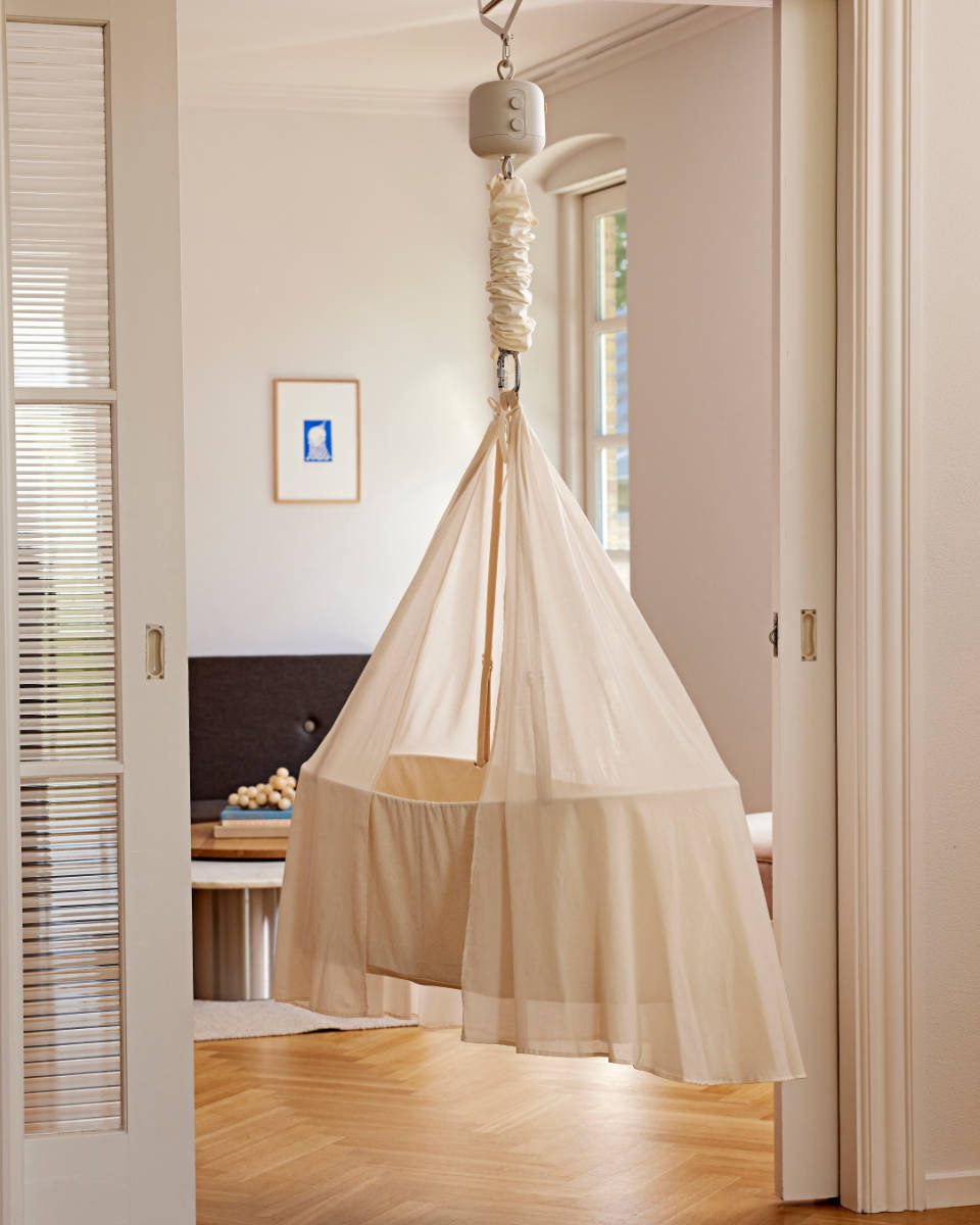 In ihren ersten Monaten reagieren Säuglinge höchst empfindlich auf die Umgebung. Grelles Licht oder übermäßig viele visuelle Eindrücke können das Einschlafen erschweren. Der Membantu Himmel dämpft diese Reize sanft und reduziert die Helligkeit. Dadurch entsteht eine behütende Hülle, welche dein Baby vor übermäßiger Stimulation schützt und ihm hilft, schneller Entspannung zu finden – beinahe so geborgen wie vor der Geburt.