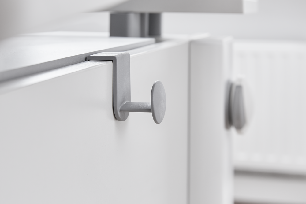 - Die Kabelkanalabdeckung verdeckt die Einsicht in den Kabelkanal. In transluzenter Optik.