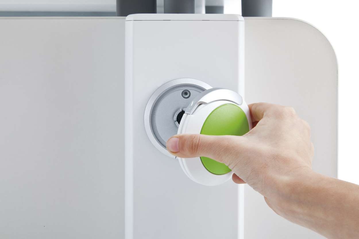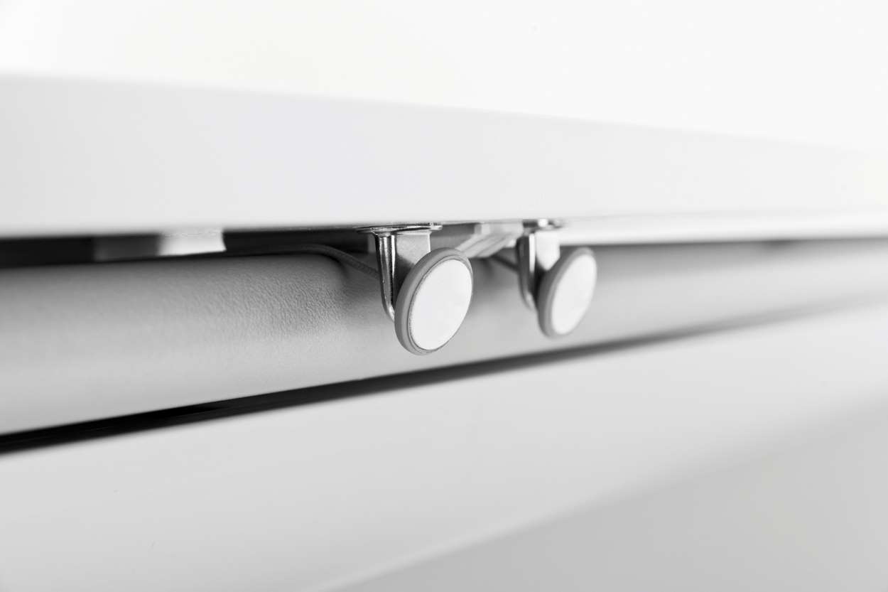 - Der Moll Champion kann mit einem QI-Charger zum kabellosen Laden von Smartphones und -watches ausgestattet werden. Der Charger wird nachträglich ganz einfach in den fixen Teil der Tischplatte montiert.