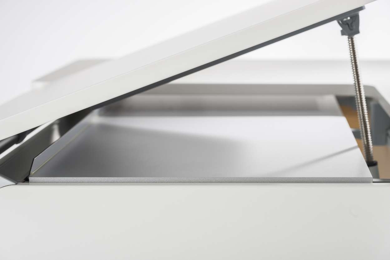 - Die Schubladenabdeckung sorgt für Staub- und Sichtschutz bei schräg gestellter Tischplatte
