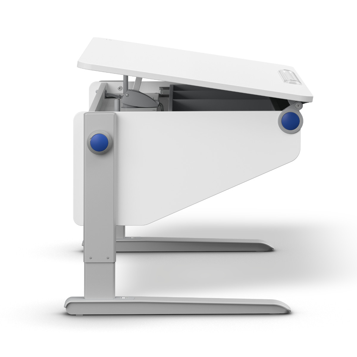 - Stufenlos schrägstellbare Tischplatte bis 18° zum Anheben – gebremste Absenkung einstellbar