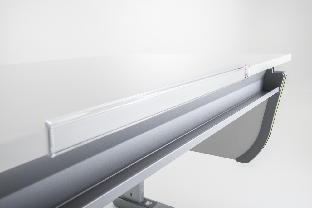Die passende Abrutschsperre für das Modell Joker wird einfach an den Joker geklemmt. Dadurch können Hefte, Bücher und Stifte auch bei schräger Tischplatte nicht herunterfallen.