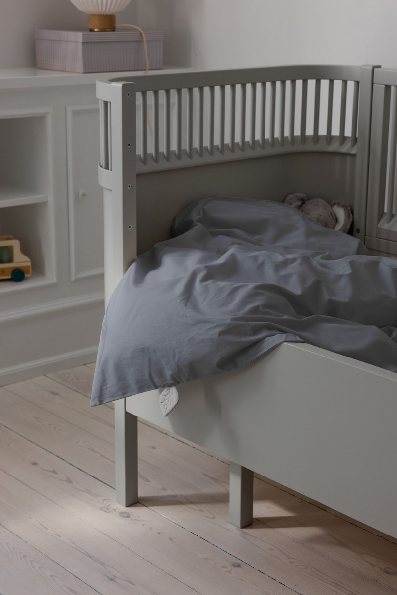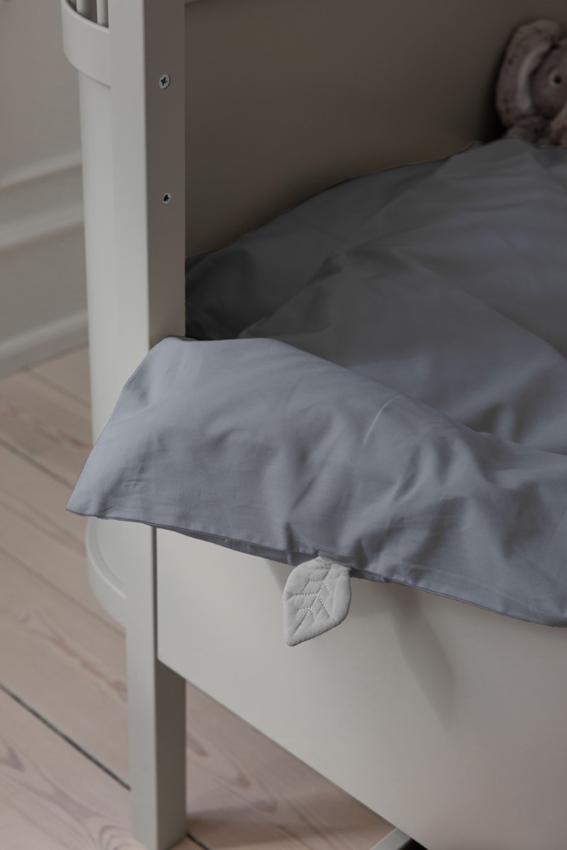 Die beiden Bezüge – einer für die Decke, einer für das Kissen – verfügen über verdeckte YKK-Reißverschlüsse, damit nichts beim Schlafen stört. Ein liebevolles Extra ist die kleine Blätterlasche am Deckenbezug, die als beruhigendes Element für müde Finger dienen kann.