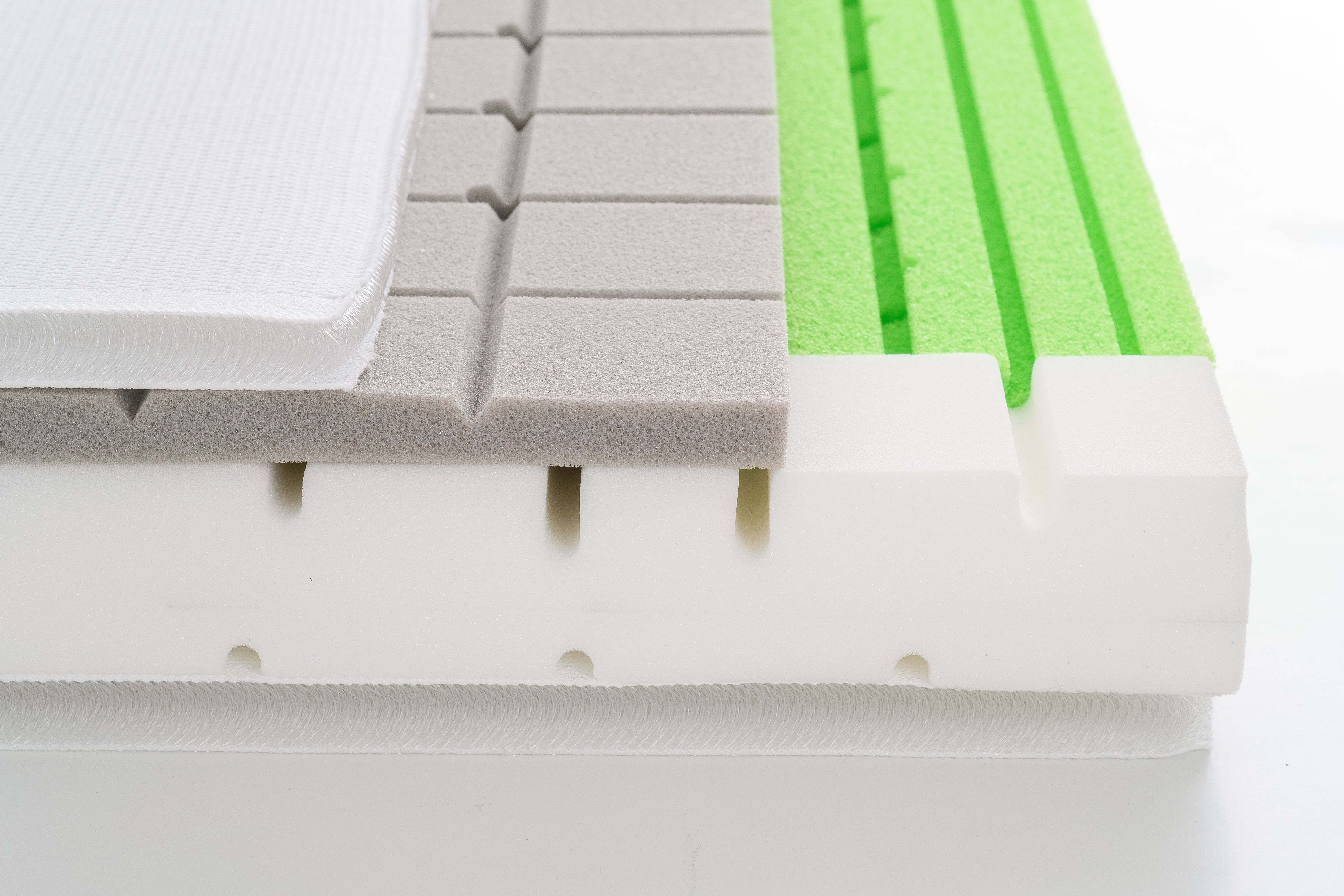 - Viskoelastische Schaum: Reagiert auf Druck und passt sich optimal dem Körper des Babys an. Die offenporige Struktur macht den visco-elastischen Schaum besonders luftdurchlässig.
