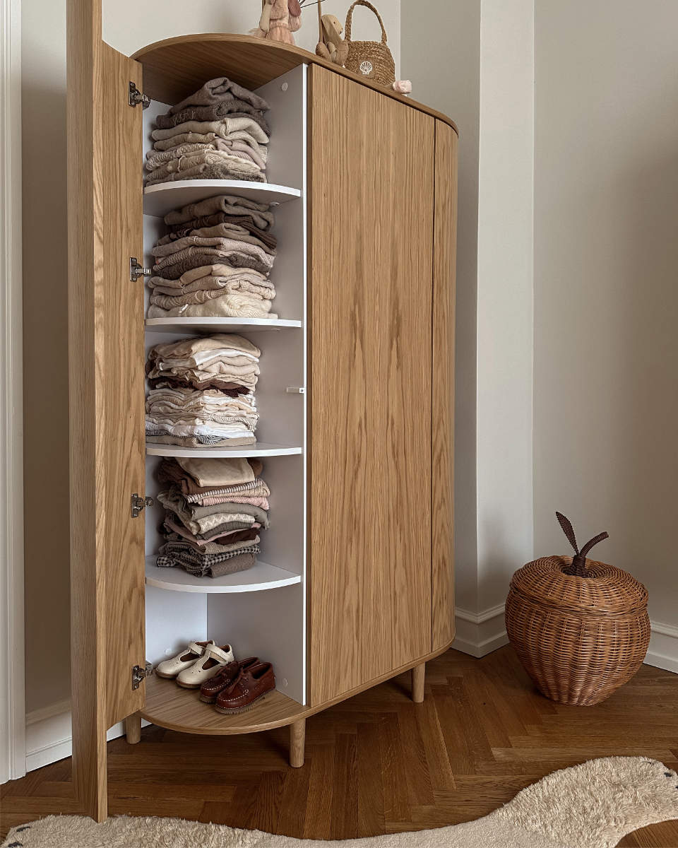 Die Kai Kommode begeistert mit ihrer klaren Linienführung und Touch-Öffnung. Zwei Türen mit Regalböden und drei geräumige Schubladen bieten Platz für alles, was du brauchst. Der separat erhältliche Wickelaufsatz macht sie zur praktischen Wickelstation, die nach der Babyzeit elegant weitergenutzt werden kann.
