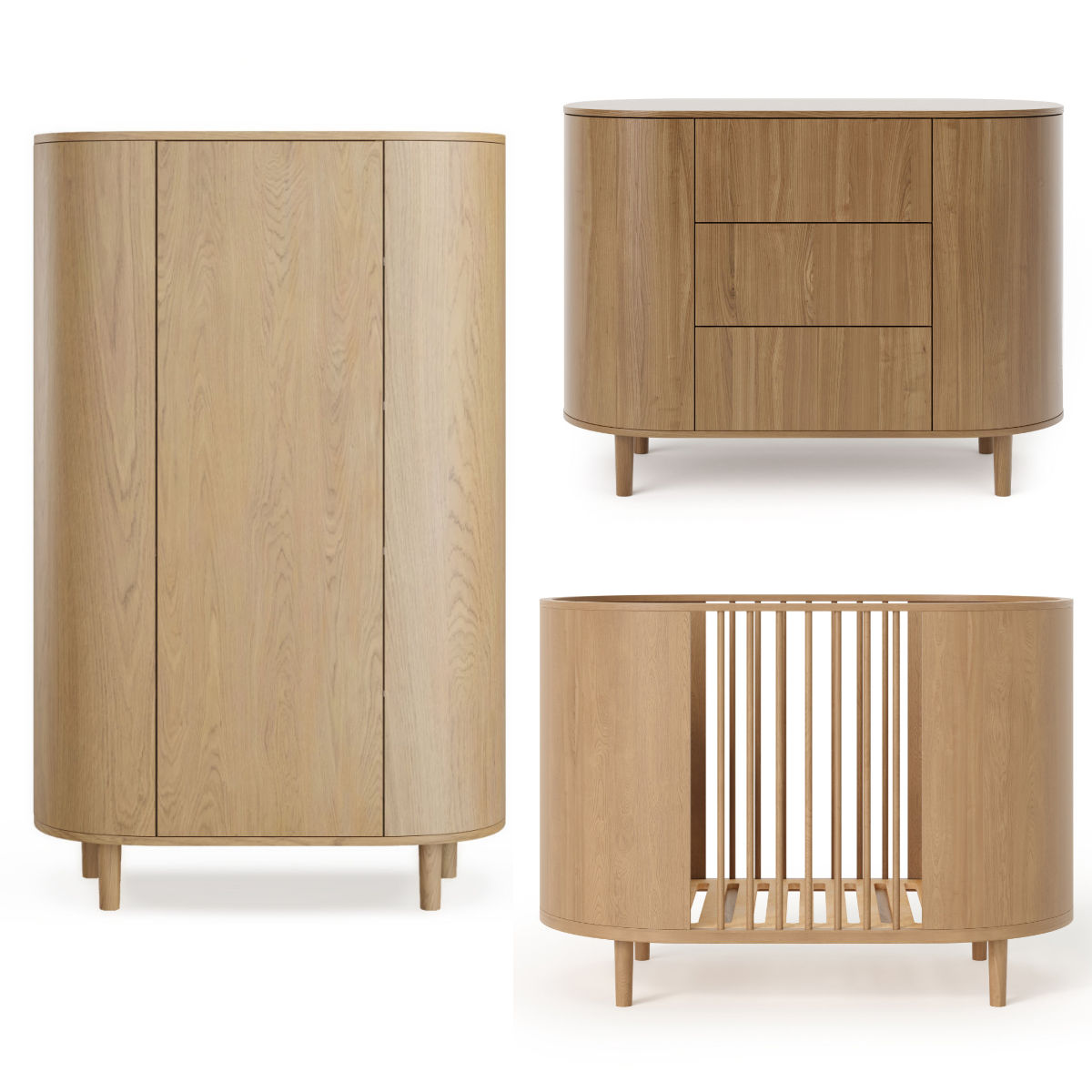 Mit dem Kinderzimmer Kai von KAS Kopenhagen holst du dir ein stilvolles Komplettset ins Haus, das mit zeitlosem, elegantem Design und cleverer Funktion überzeugt. Das dreiteilige Set umfasst das Kai Umbaubett, die Kai Kommode und den Kai Kleiderschrank.