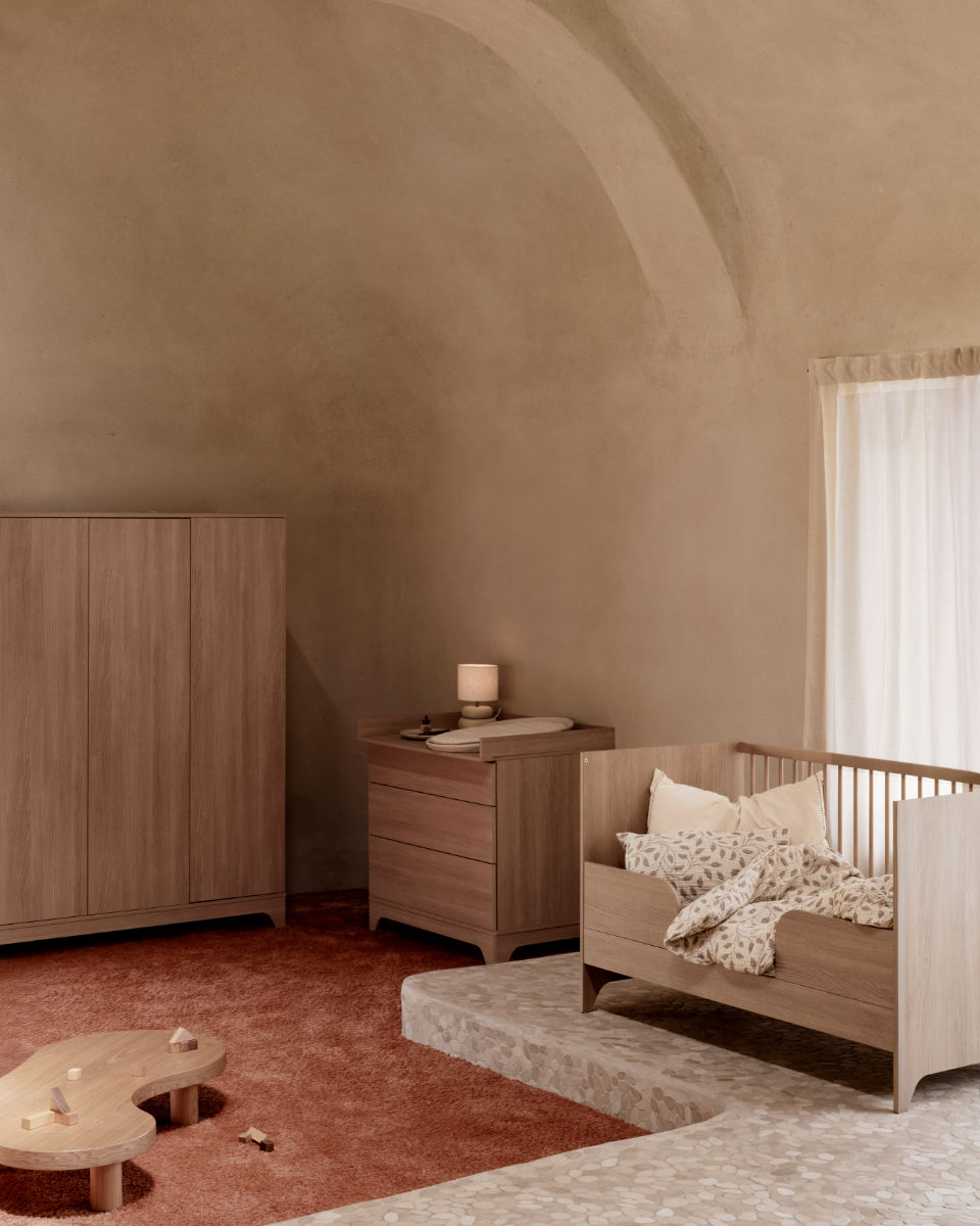Das Tsugi Babybett gibt es in 120 × 60 cm und 140 × 70 cm. Beide Varianten lassen sich später in ein gemütliches, halb-offenes Kinderbett umbauen und bieten deinem Kind einen sicheren Ort zum Spielen, Entspannen oder Lesen.