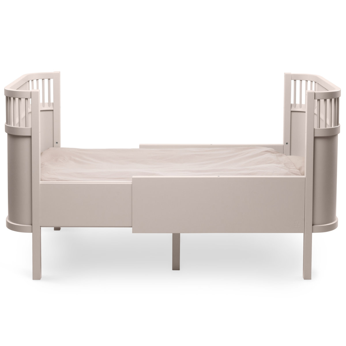 Das Sebra Bett lässt sich mühelos vom Babybett in ein Juniorbett verwandeln. In der Anfangszeit bieten die Gitterseiten Sicherheit und Schutz. Später können sie teilweise oder vollständig entfernt werden. Der höhenverstellbare Lattenrost ermöglicht rückenschonendes Hineinlegen und Herausnehmen deines Babys.