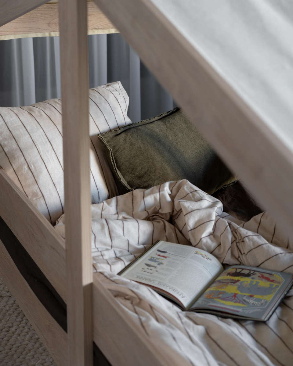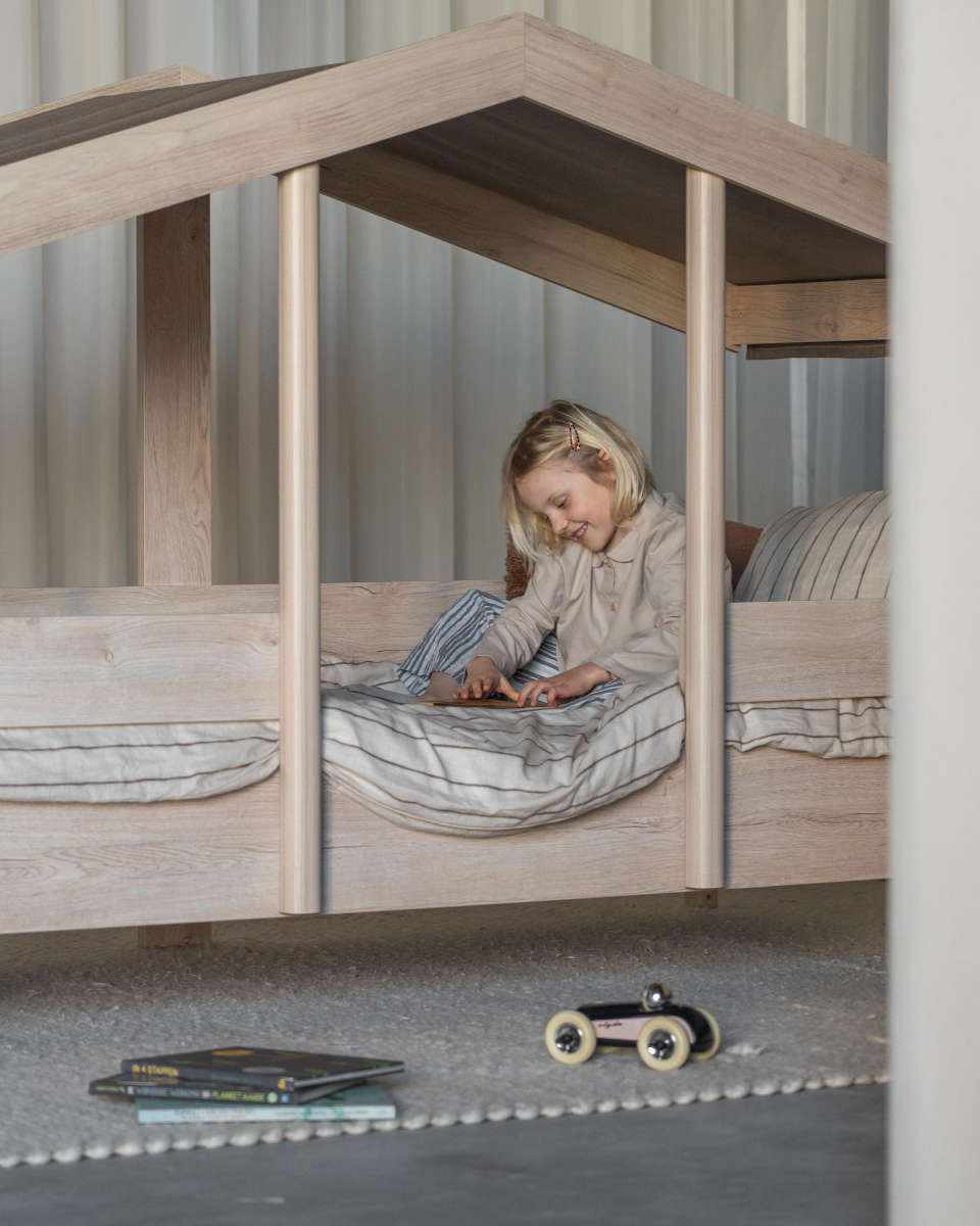 Quax setzt auf erstklassige Materialien. Die Kombination aus robuster Spanplatte und formstabilem MDF sorgt dafür, dass das Bett den täglichen Anforderungen im Kinderalltag standhält. Selbstverständlich erfüllt das Design die europäische Norm EN 747-1 für Sicherheit im Wohnbereich.