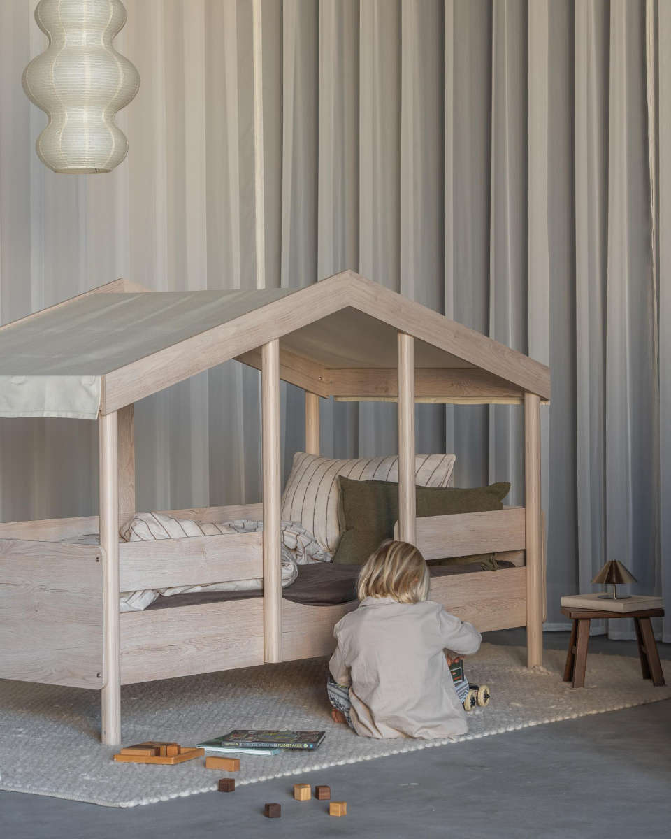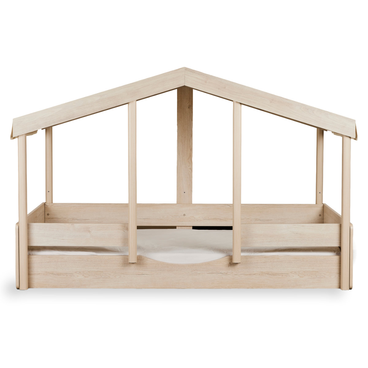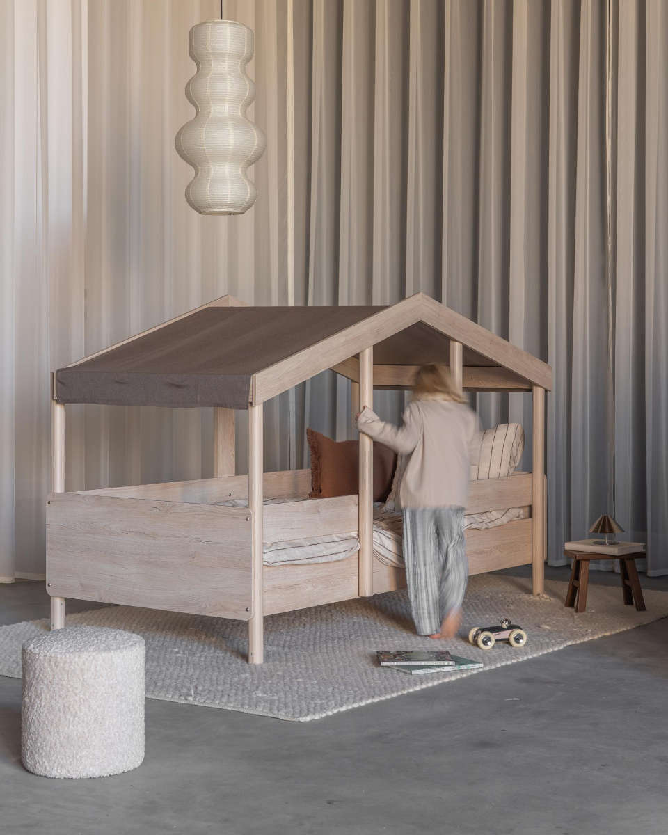 Verwandle das Bettgestell in eine echte Wohlfühloase! Mit einem separat erhältlichen Stoffdach in den Farben Butter oder Chocolat verleihst du dem Hausbett den letzten Schliff. Der Stoff wird einfach per Klettverschluss fixiert und schafft eine behagliche Umgebung für spannende Vorlesestunden und erholsamen Schlaf.