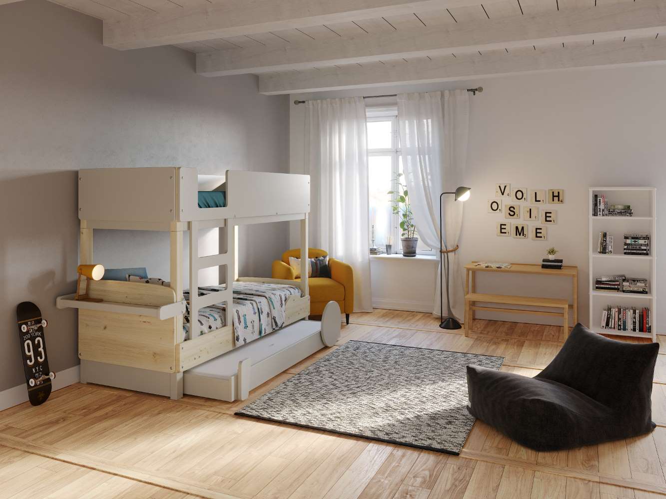 Im Lieferumfang sind alle Teile enthalten, um ein Einzelbett in ein Stockbett umzubauen.