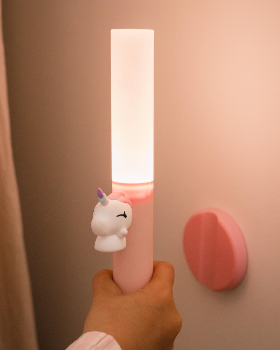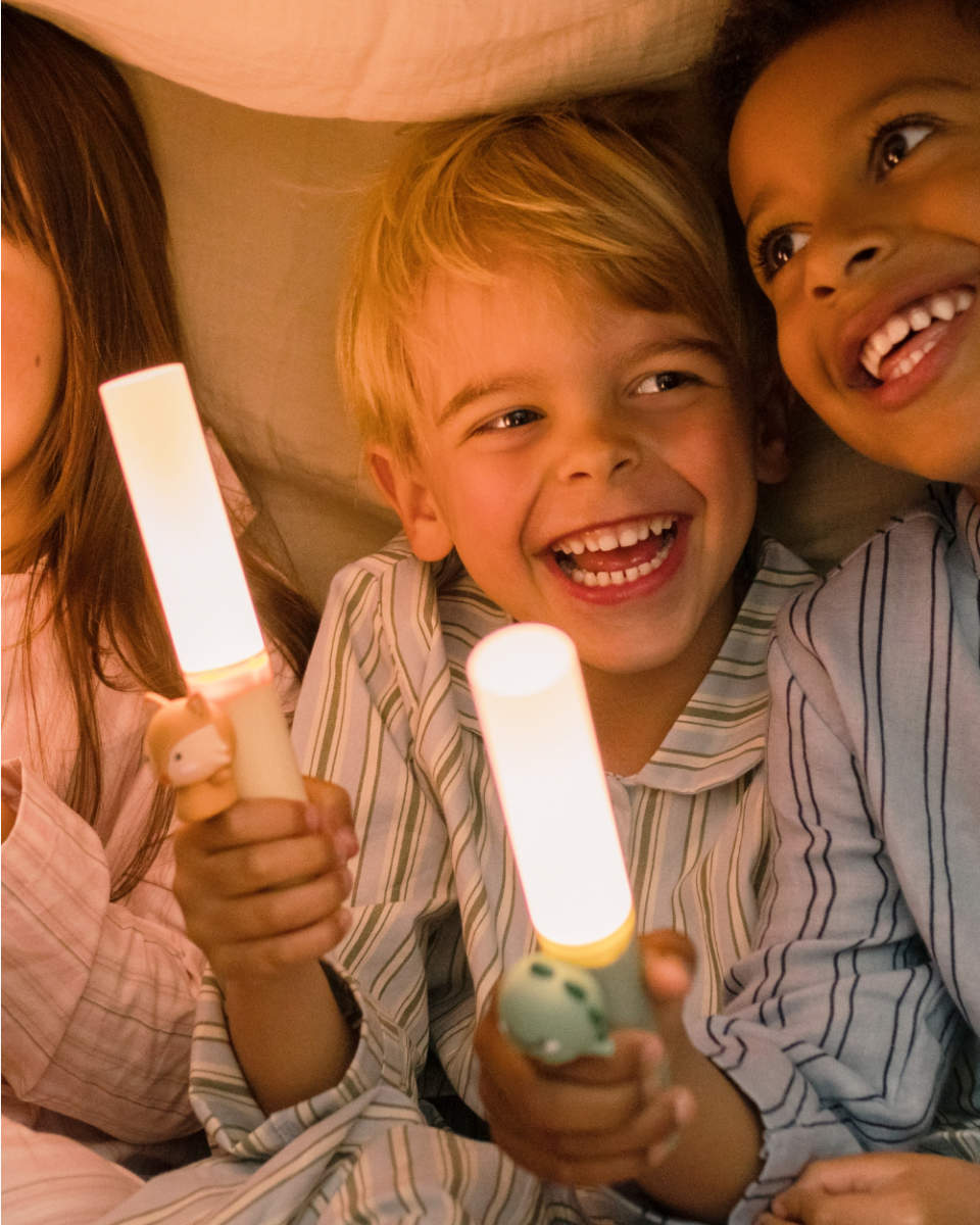 Die Silikonoberfläche fühlt sich angenehm an und macht die Lampe sicher für Kinder. Kabellos und wiederaufladbar – ideal für den Alltag.