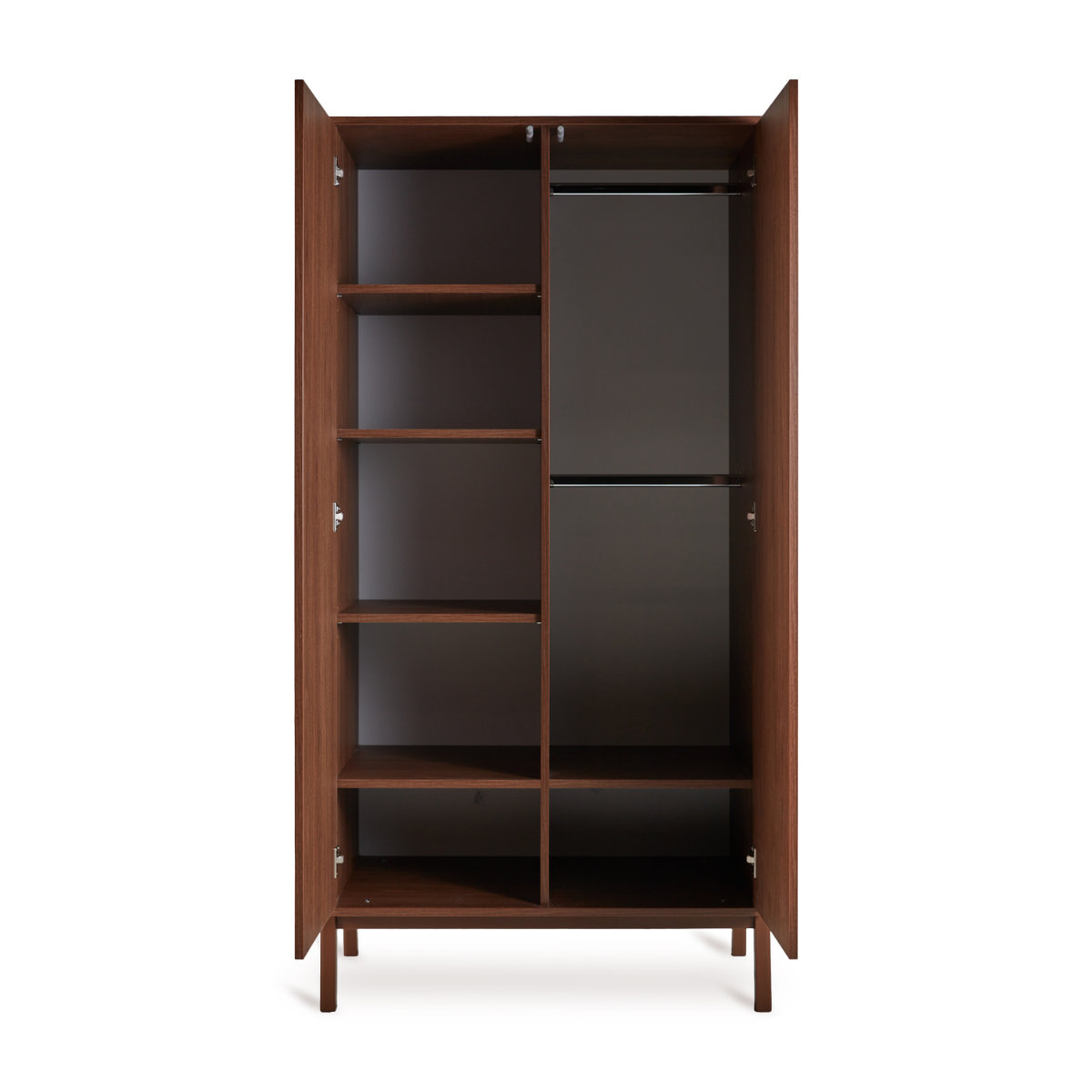 Der Ashi Kleiderschrank verbirgt hinter seinen stilvollen Türen ein ausgeklügeltes System aus Regalen und Kleiderstangen, das keine Wünsche bei der Aufbewahrung offen lässt.
