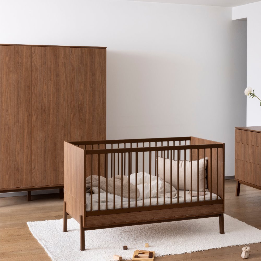 Planst du, das ganze Babyzimmer neu zu gestalten? Dann kombiniere den Kleiderschrank mit dem passenden Kinderbett und der Kommode aus der Quax Ashi Reihe!