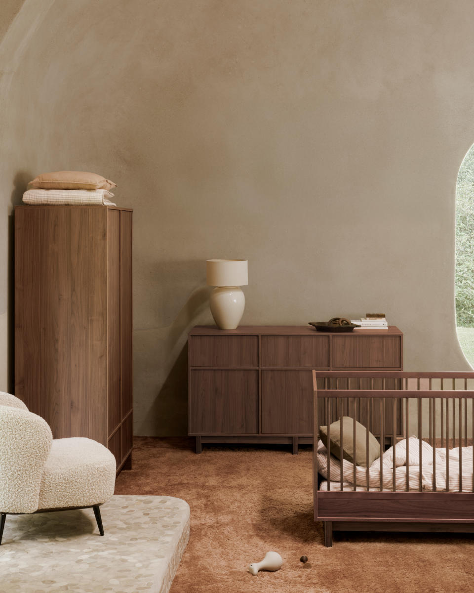 Wie alle Möbel der Kyo Serie verbindet auch dieser Schrank skandinavische Ruhe mit japanischer Klarheit. Die warmen Holztöne schaffen ein gemütliches Raumgefühl – ob im Babyzimmer oder im Wohnbereich.