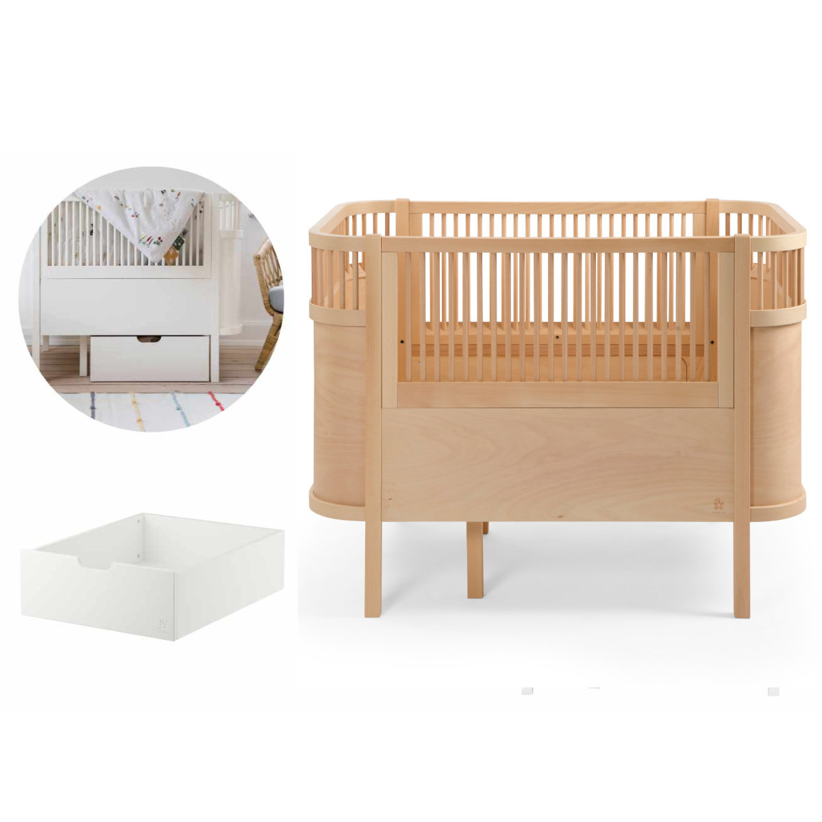 Mit dem Bundle Rabatt von Sebra -Babybett mit Sebra Schublade- Geld sparen