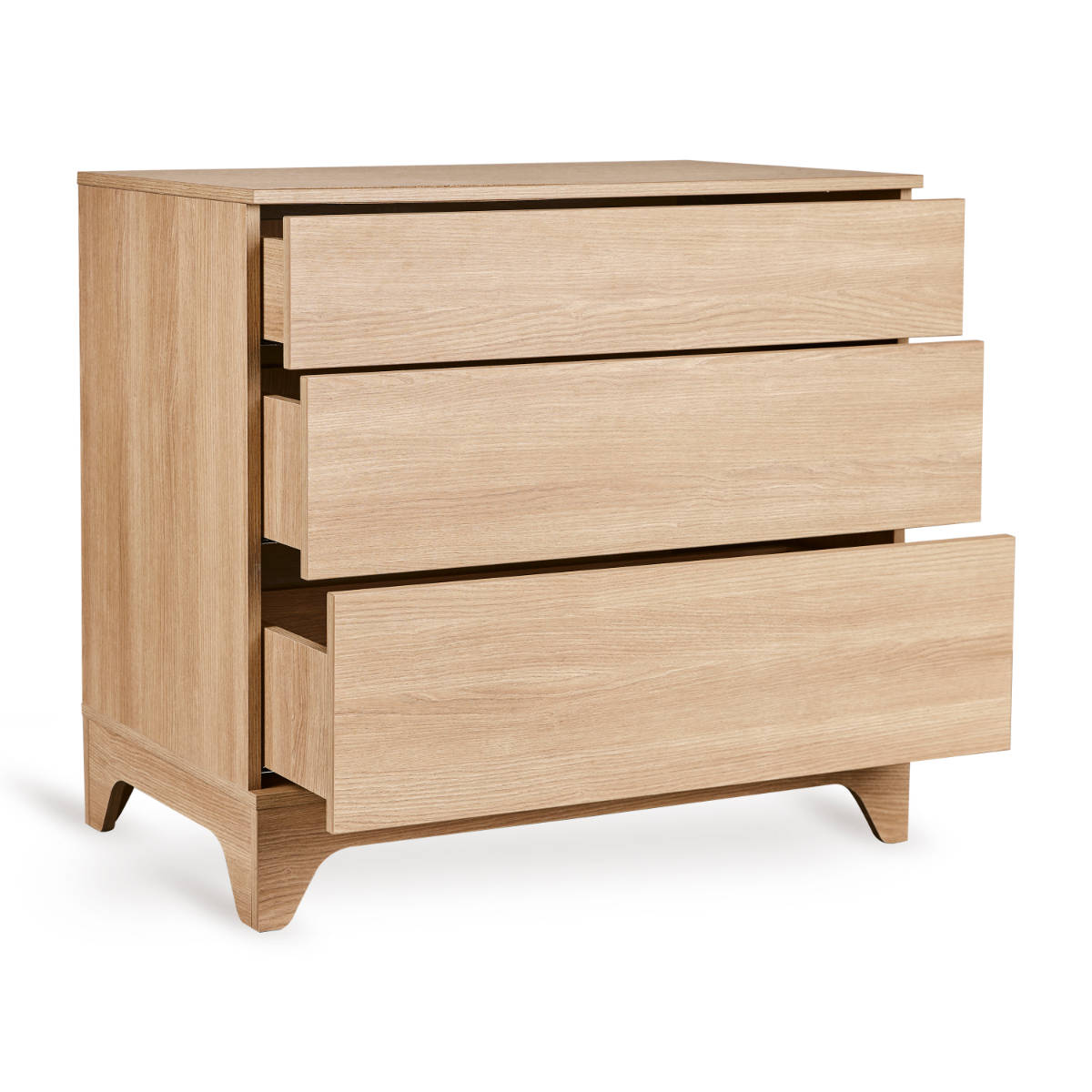 Die drei grifflosen Push-to-Open Schubladen bieten dir viel Platz für Kleidung, Wickelzubehör oder kleine Dinge des Alltags. Das leichtgängige Öffnungssystem ermöglicht dir eine einfache Bedienung – perfekt, wenn du nur eine Hand frei hast.