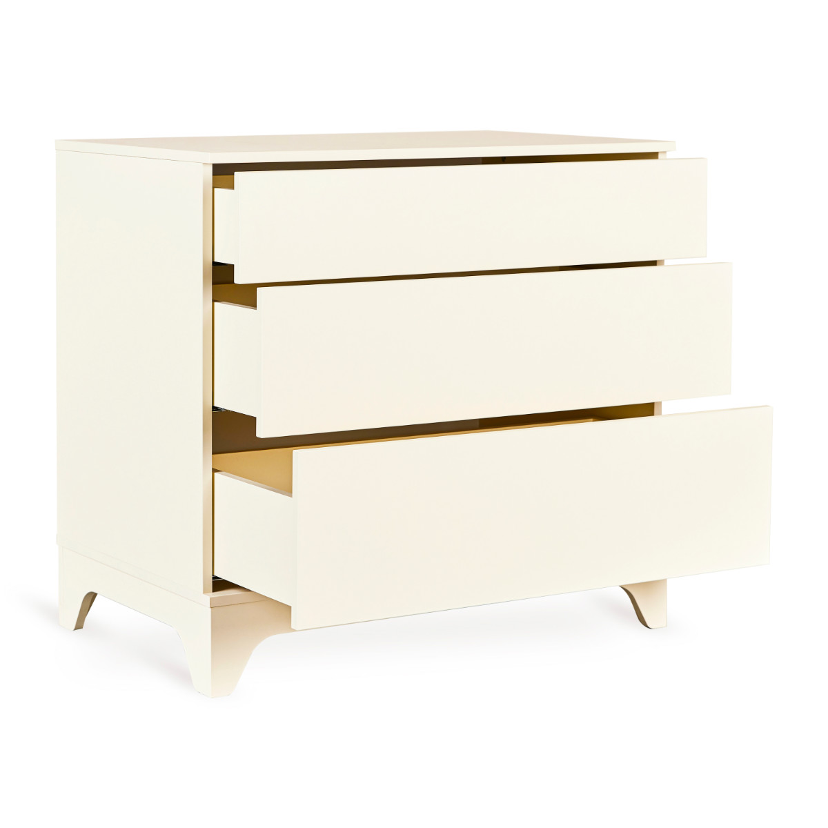 Die drei grifflosen Push-to-Open Schubladen bieten dir viel Platz für Kleidung, Wickelzubehör oder kleine Dinge des Alltags. Das leichtgängige Öffnungssystem ermöglicht dir eine einfache Bedienung – perfekt, wenn du nur eine Hand frei hast.