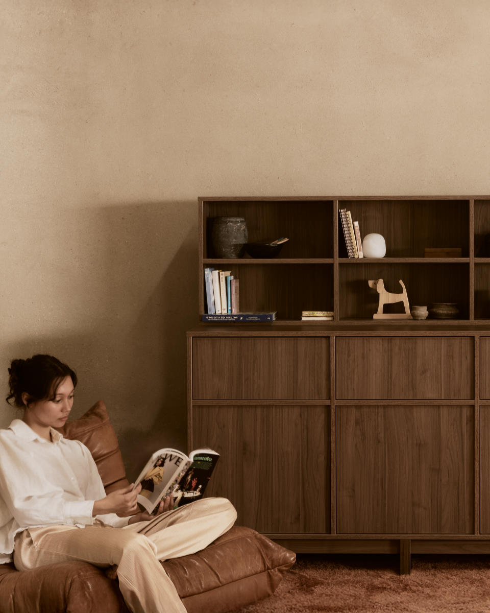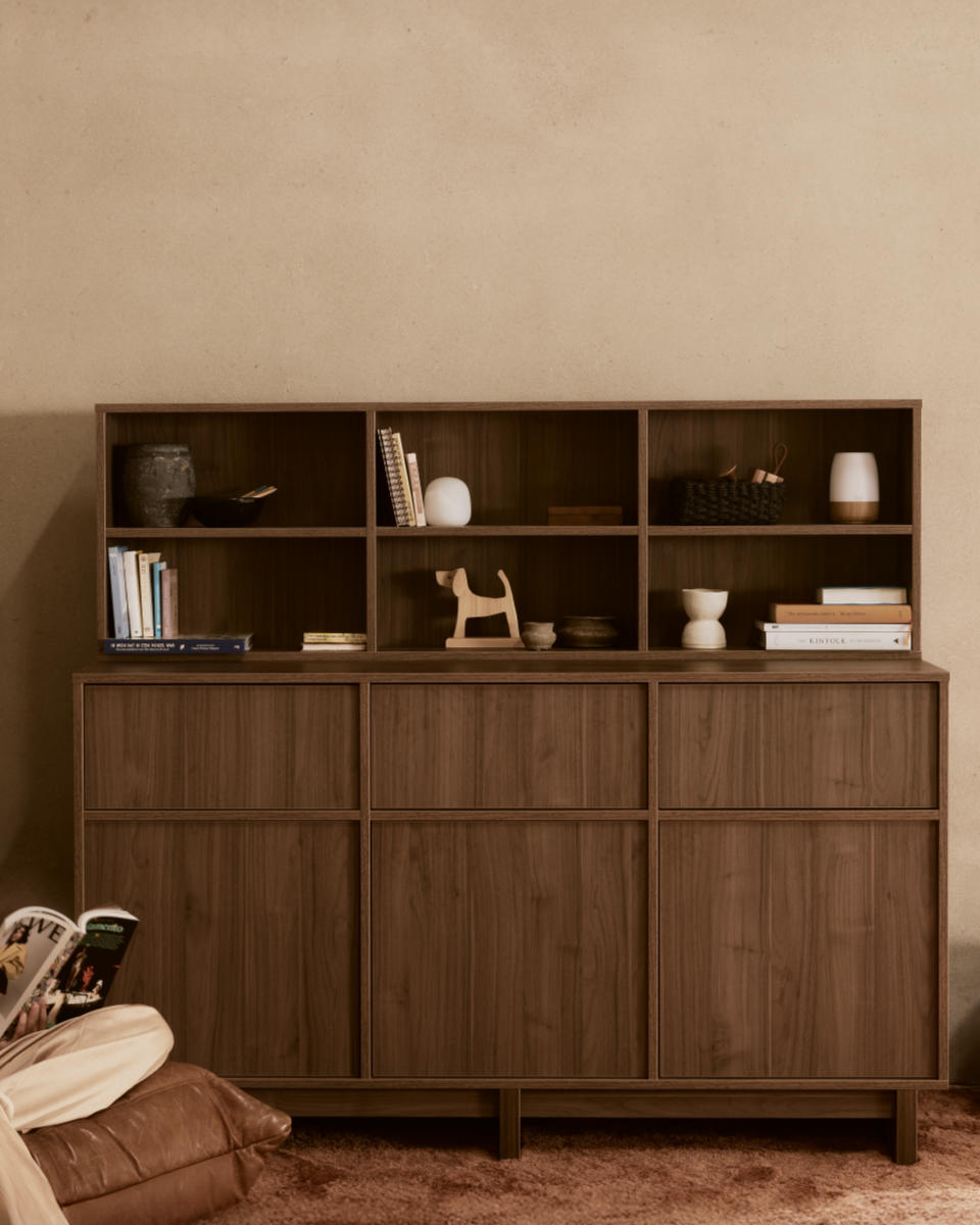 Dank seines minimalistischen Designs fügt sich der Regalaufsatz nahtlos in jede Einrichtung ein. Die warmen Holzdetails und klaren Linien verbinden skandinavische Ruhe mit japanischer Schlichtheit – ein langlebiges Möbelstück, das überall angenehm wirkt.