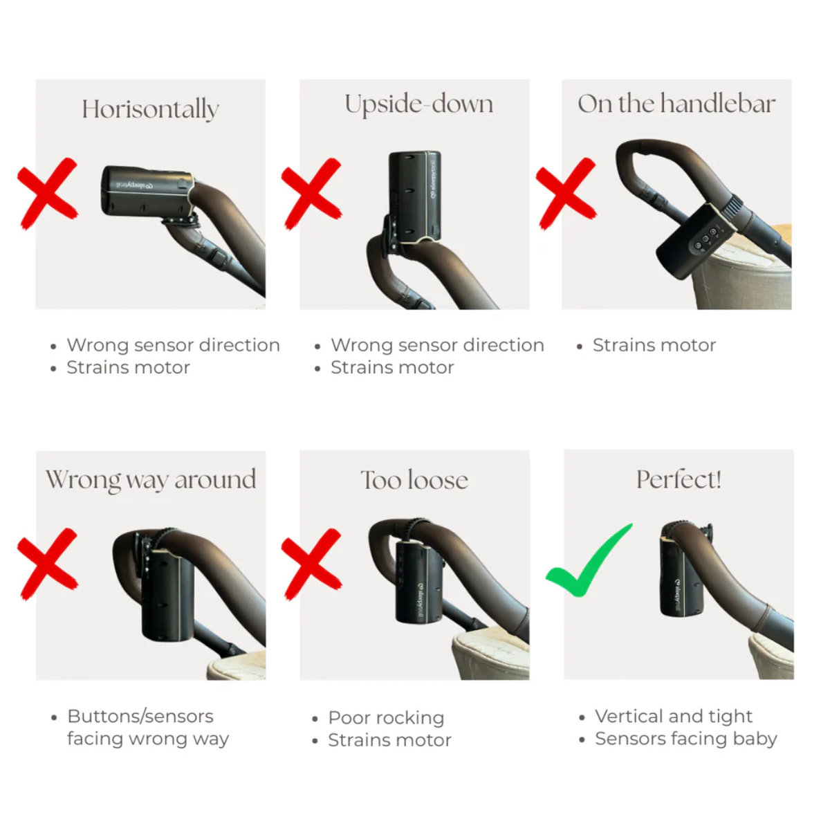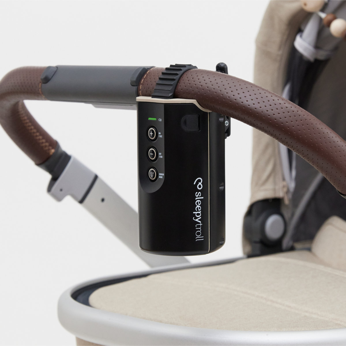 Der Sleepytroll lässt sich mühelos am Kinderwagen befestigen und funktioniert mit separat erhältlichen Adaptern auch am Babybett oder an der Babywippe. So genießt dein Baby stets dieselbe beruhigende Bewegung, egal ob zu Hause, unterwegs oder auf Reisen.
