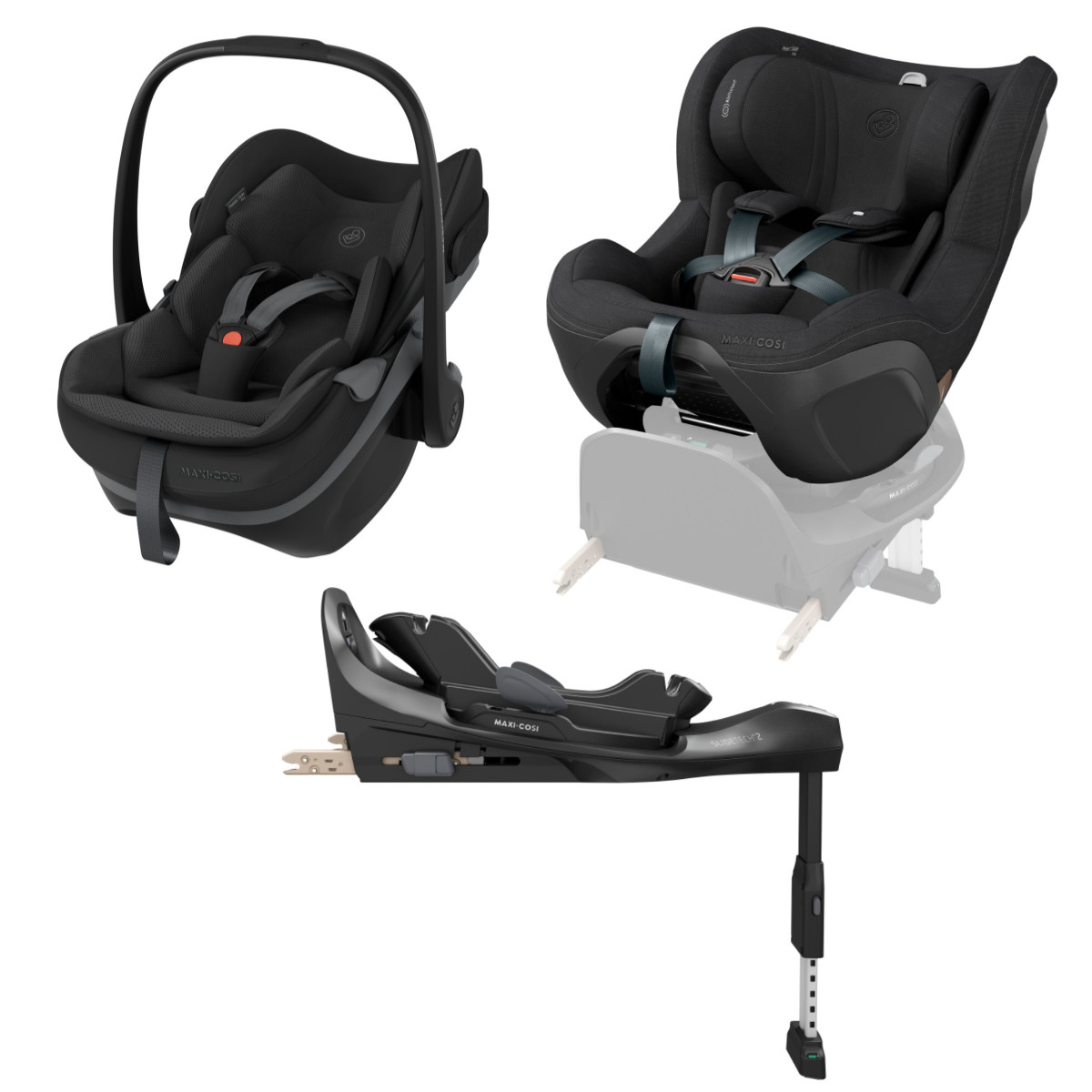 Im Bundle enthalten sind die Maxi-Cosi Pebble Slide Pro Babyschale, der Maxi-Cosi Pearl Slide Pro i-Size Kindersitz sowie die FamilyFix Slide Pro Basisstation. Alles perfekt aufeinander abgestimmt – für maximalen Komfort und höchste Sicherheit.