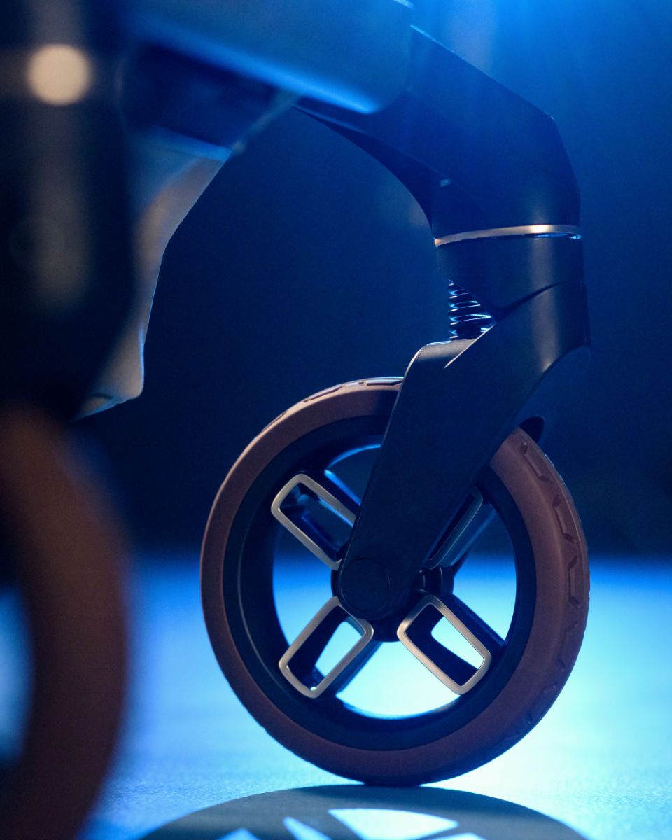Das integrierte LED-Lichtsystem sorgt auch bei Dämmerung für gute Sichtbarkeit, während der 5-Punkt-Gurt und die verstellbaren Schulterpolster für maximale Sicherheit sorgen. Hochwertige Räder mit Gummibeschichtung, EVA-Kern und Allradfederung bieten eine ruhige und stabile Fahrt auf jedem Untergrund.