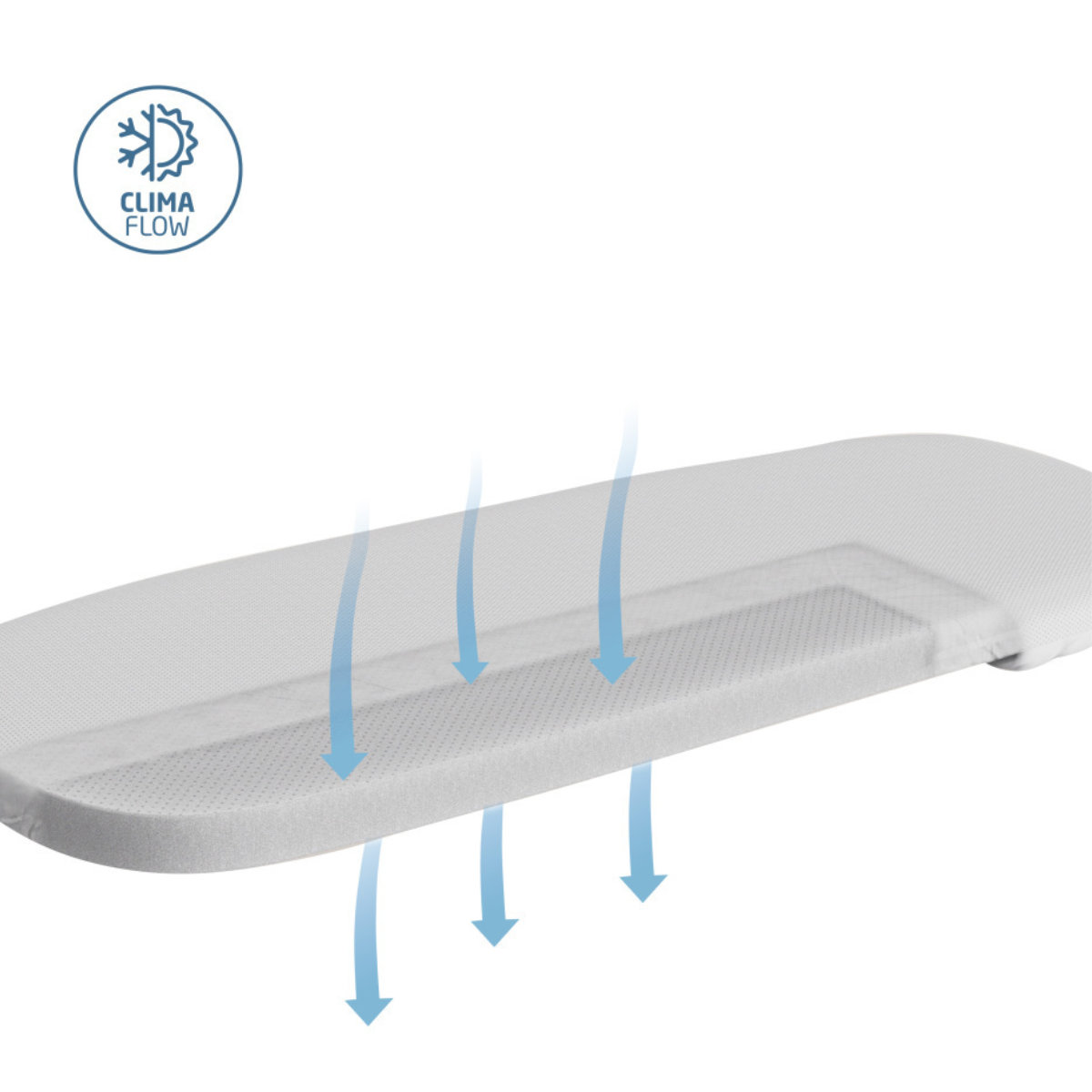 Dein Baby ruht auf einer wendbaren Memory-Schaum-Matratze – wahlweise mit weicher 100% Bio-Baumwolle oder mit luftdurchlässigem Mesh. ClimaFlow-Belüftungselemente fördern die Zirkulation, damit es das ganze Jahr über angenehm bleibt.