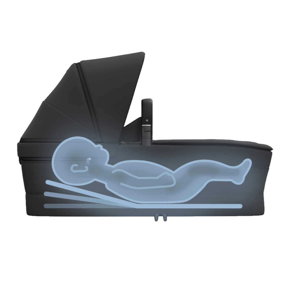 • Wechsel: Wird die Wanne zu klein (ca. ab 6 Monaten oder 9 kg), nutzt du den Fame Cabin Sitz – zunächst in flacher Liegeposition, bis dein Kind selbstständig sitzt.