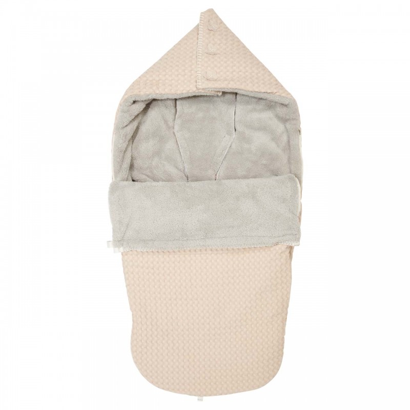 Der Fußsack hat an der Rückseite eine Öffnung mit Klettverschluss, wodurch Gurte leicht durch den Fußsack passen. Ein weiteres großartiges Merkmal ist, dass die Vorderseite des Fußsacks komplett geöffnet werden kann, dieser Teil ist somit auch als Decke für das Baby benutzbar. Das obere Ende des Fußsacks ist mit einem Klettverschluss ausgestattet, damit kann dieser Teil in eine Kapuze umgewandelt werden.