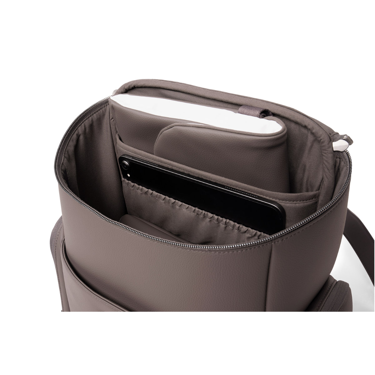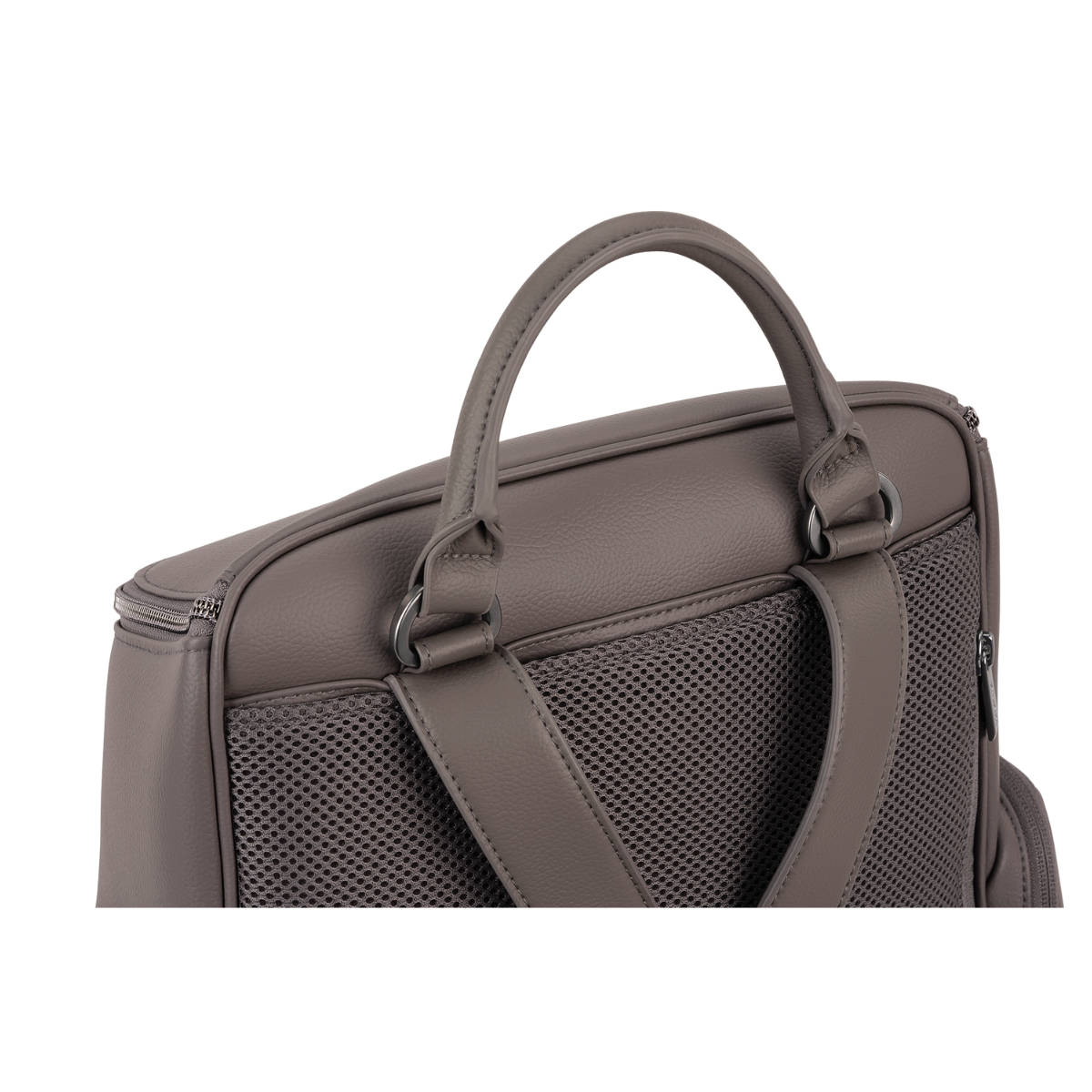 Im Inneren sorgen mehrere Taschen für Ordnung: Windeln, Snacks, Fläschchen – alles hat seinen Platz. Zwei elastische Flaschenhalter sowie Außentaschen bieten schnellen Zugriff. Ein verstecktes Bodenfach und eine gepolsterte Laptophülle (bis 16 Zoll) runden das Platzangebot ab.