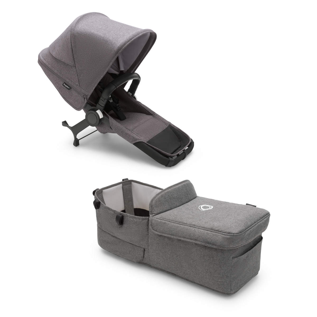 - Kann mittels separat erhältlicher Babywanne oder Sportsitz zum Geschwister- oder Zwillings-Kinderwagen erweitert werden