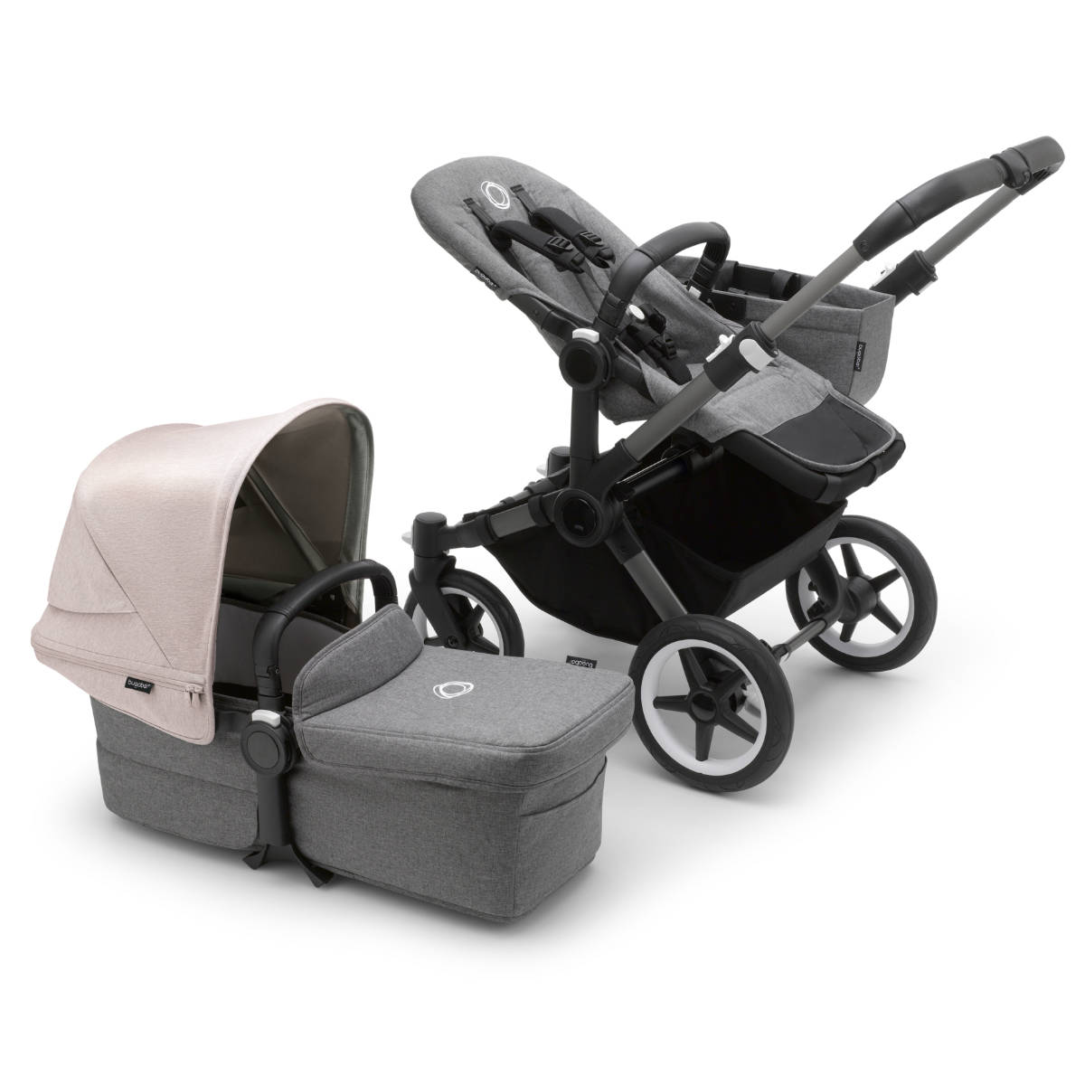 Um deinen Bugaboo Donkey 5 Mono in einen Duo Geschwisterwagen umzuwandeln, benötigst du noch: 1 x Sonnendach, Duo Erweiterungsset (separat erhältlich)