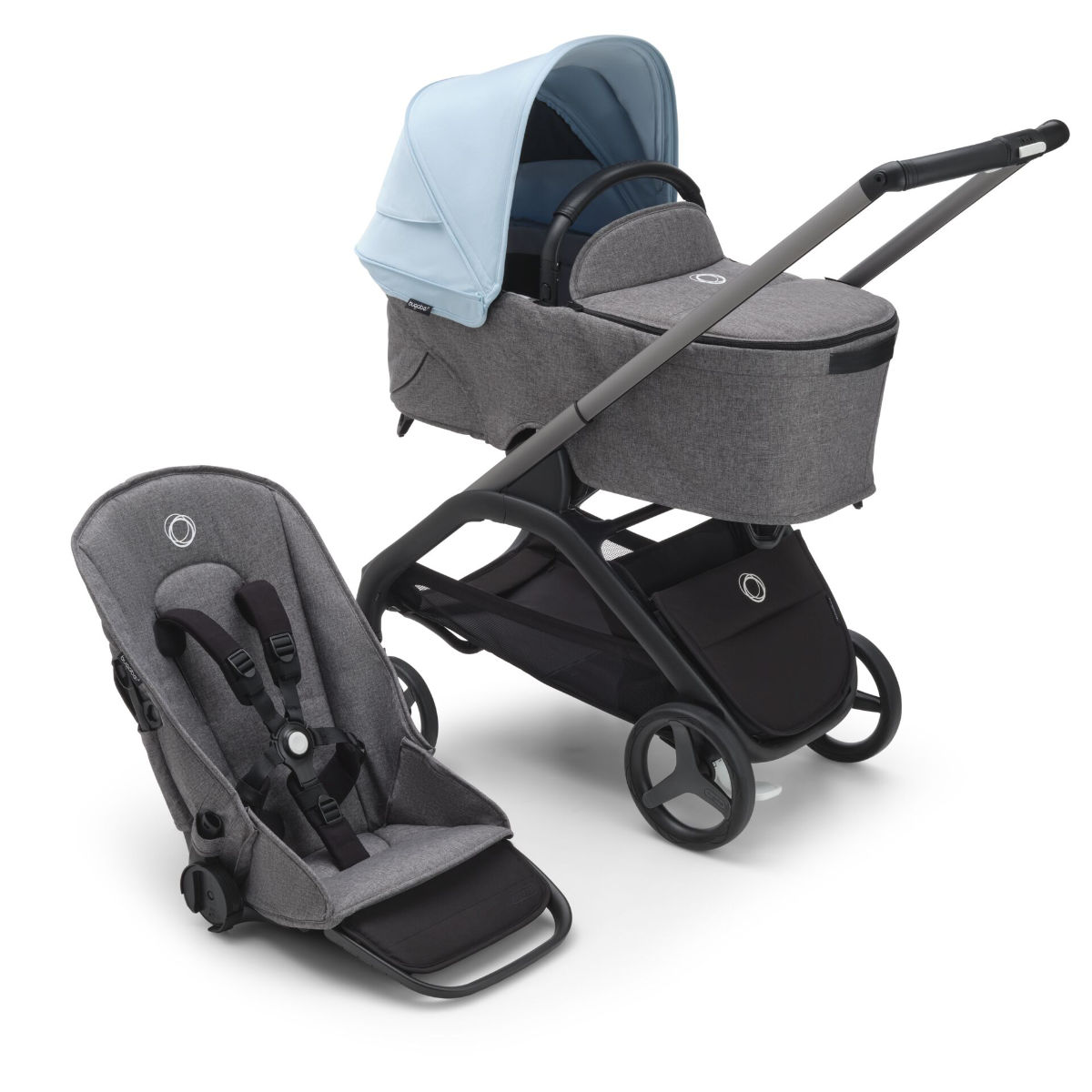 Wähle aus zwei Farboptionen für das Gestell, zwei Farben für den Sitzbezug und neun verschiedenen Sonnenschirmen, um deinen individuellen Stil zum Ausdruck zu bringen. So wird dein Bugaboo Dragonfly zu einem echten Einzelstück, das deine persönliche Note widerspiegelt.