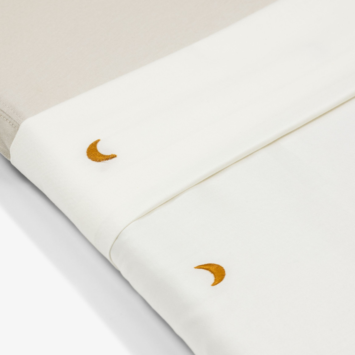 Das Bettlaken für süße Träume von Joolz bietet deinem Baby ein besonders weiches Schlaferlebnis mit Stil. Gefertigt aus seidenweichem Baumwollsatin und liebevoll bestickt mit einem feinen Mondmotiv, verleiht es dem Innenraum deines Kinderwagens eine sanfte, beruhigende Atmosphäre.
