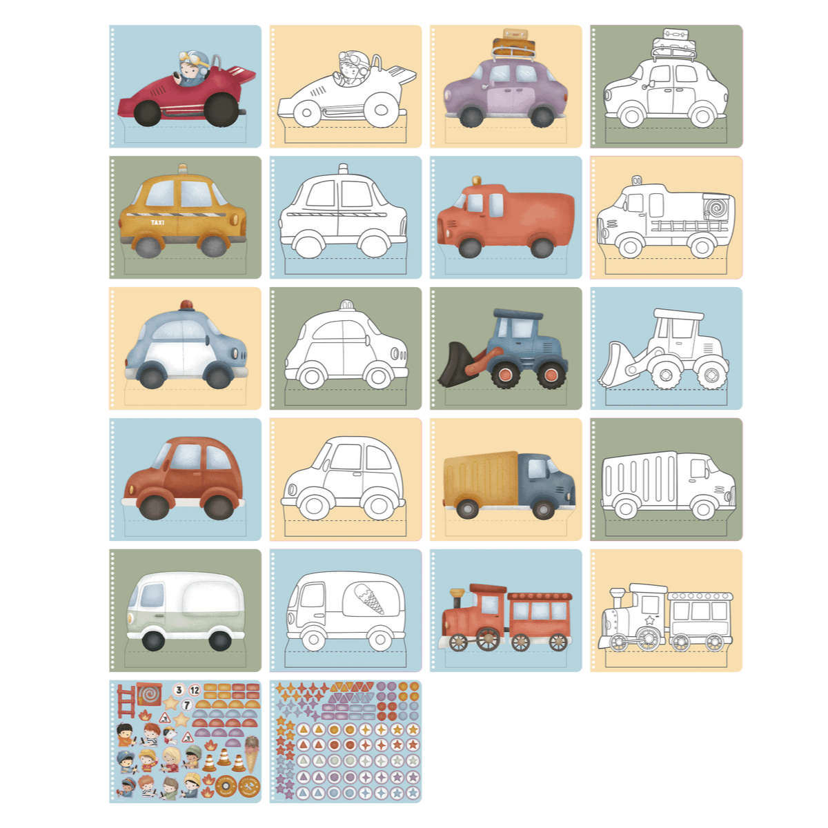 In Jims Garage können Kinder auf 20 Seiten ihre eigenen Autos entwerfen und mit Stickern, Farbe und Fantasie zum Leben erwecken. Die Schere und Sticker sind im Set enthalten, sodass jedes Fahrzeug zu einem echten Einzelstück wird. Ideal für kleine Bastler, die Technik und Bewegung lieben.