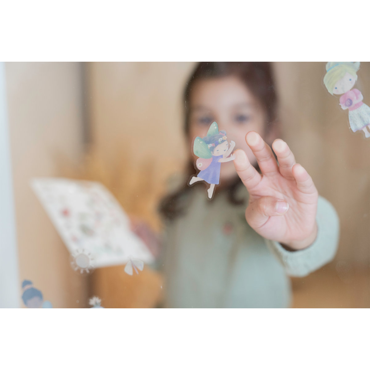 Mit diesen Little Dutch Fenster-Stickern verwandelst du Glasflächen in bunte Kunstwerke! Ob am Fenster, auf einem Spiegel oder einem Glas – die Sticker haften leicht und lassen sich immer wieder neu anordnen.
