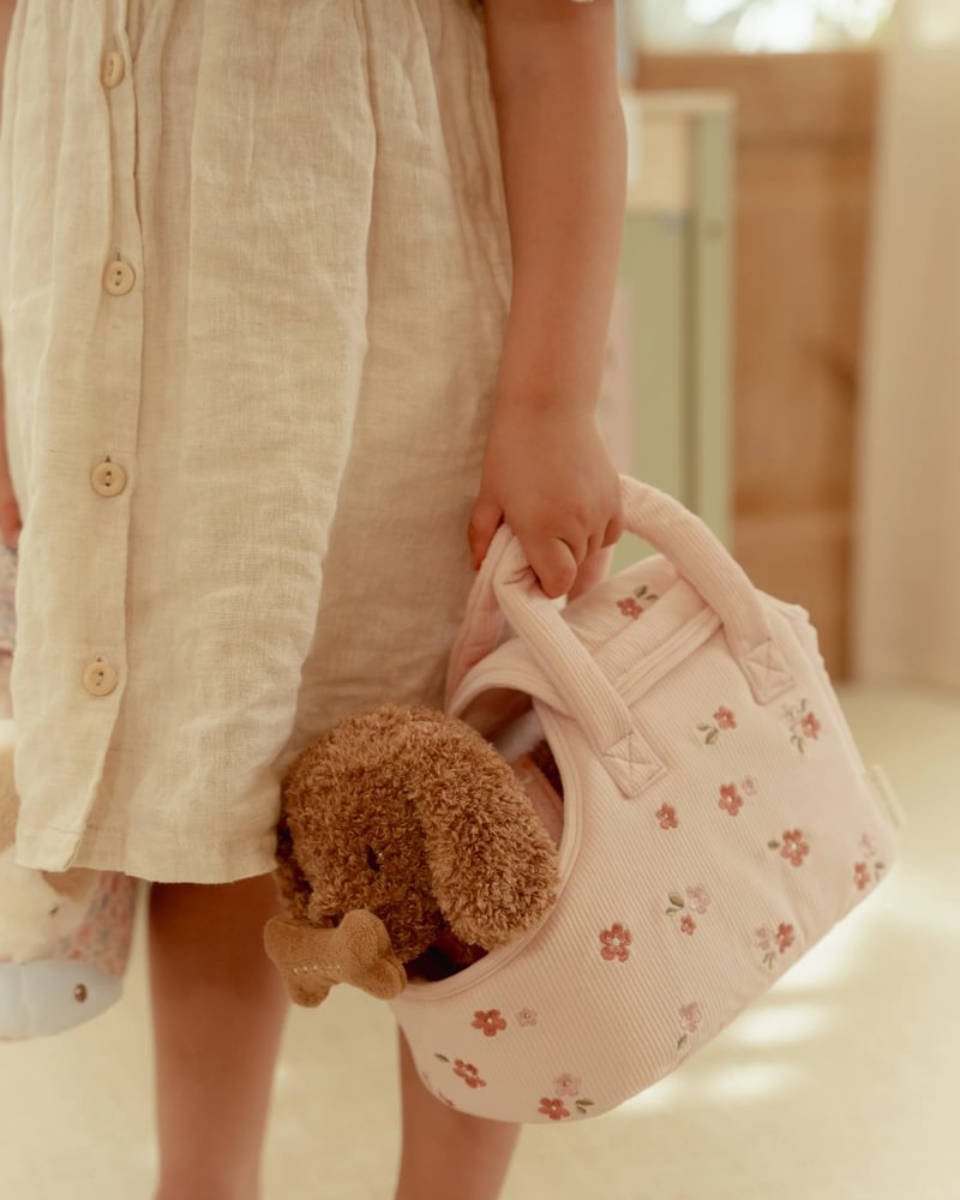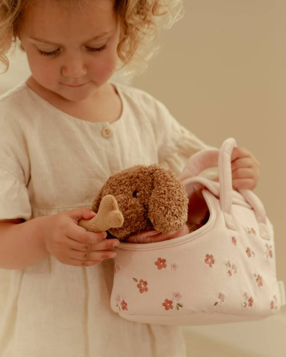 Das Little Dutch Kuscheltier in Tasche vereint Spiel, Geborgenheit und Mobilität in einem Set. Ein liebevoller Begleiter, der Kinderherzen höherschlagen lässt – zuhause und unterwegs.