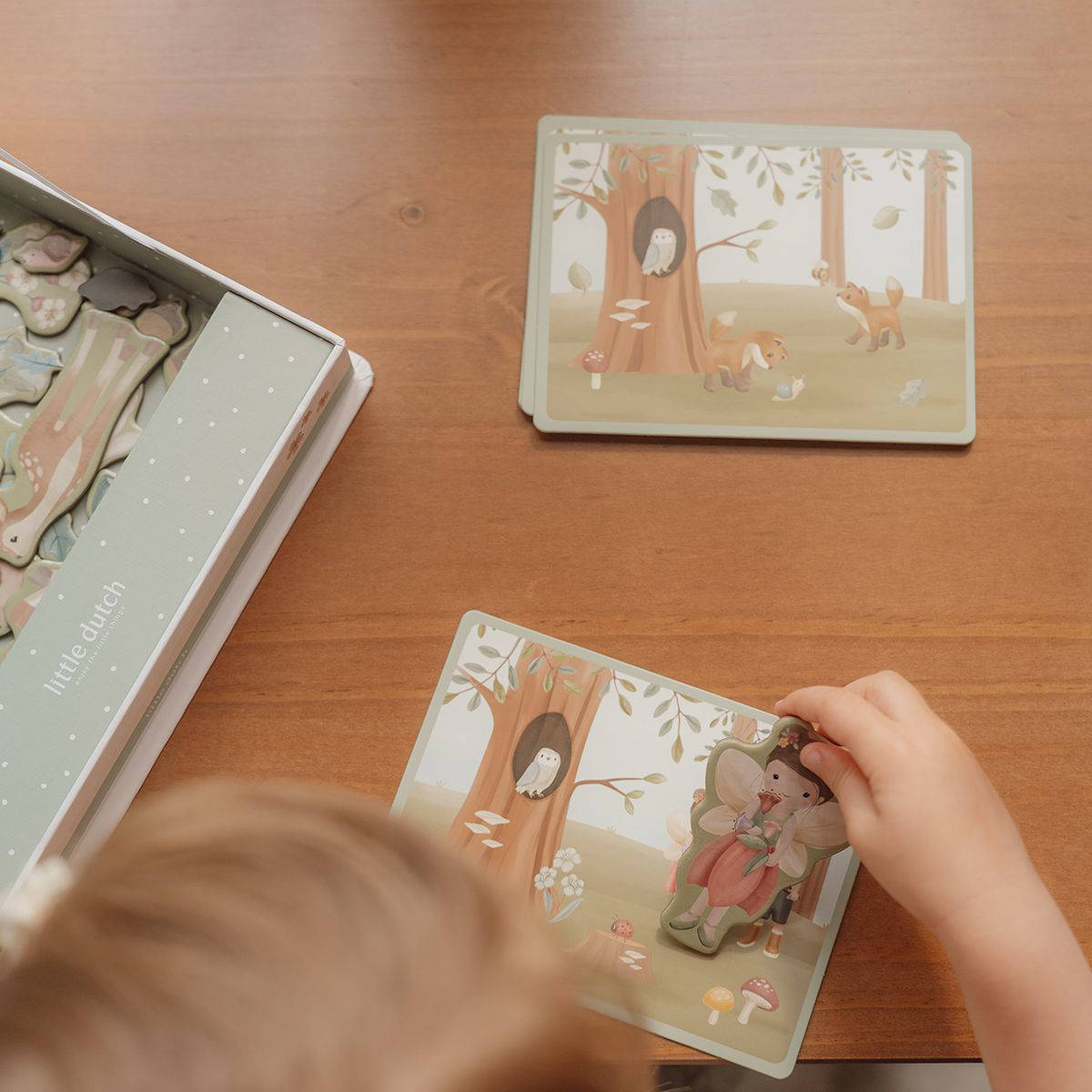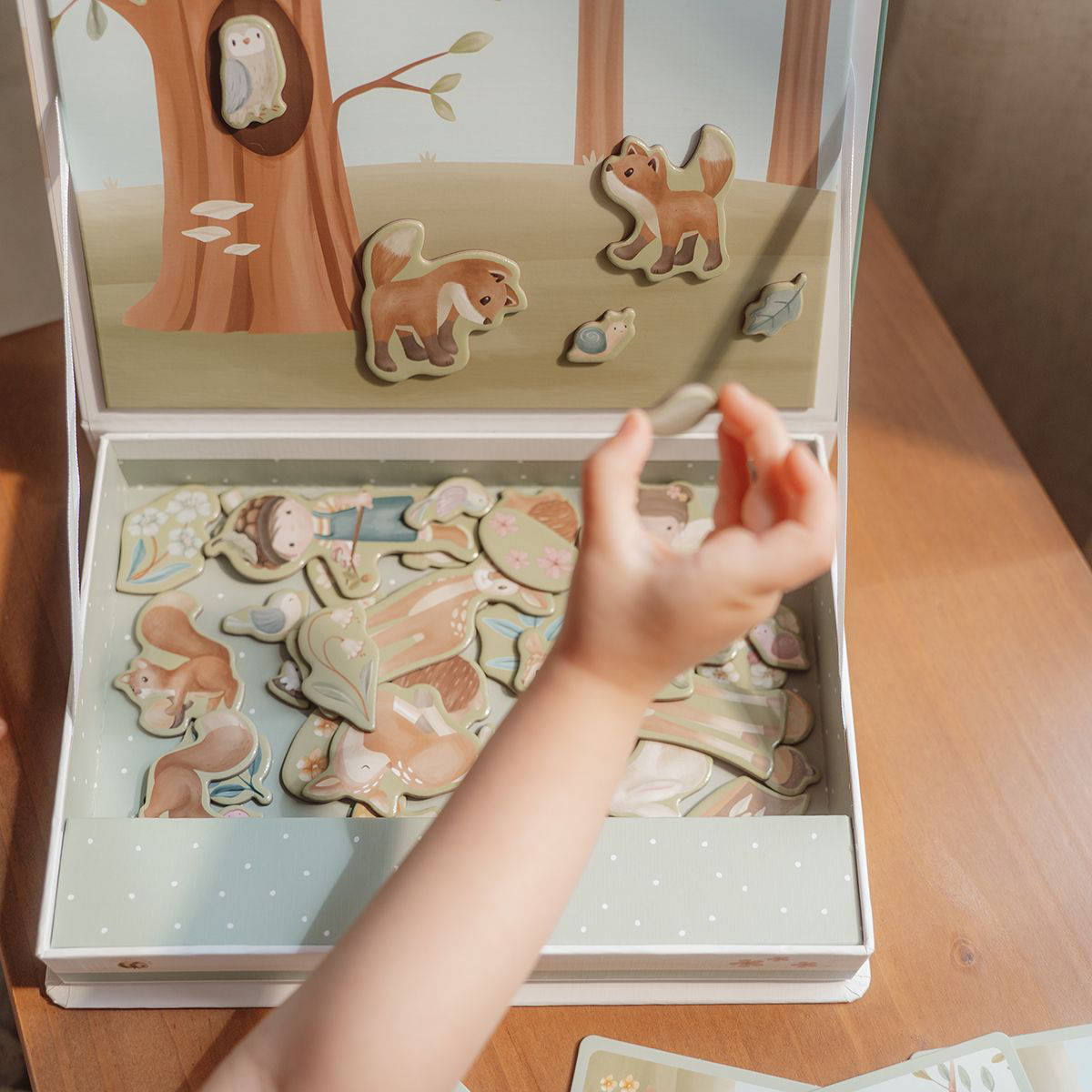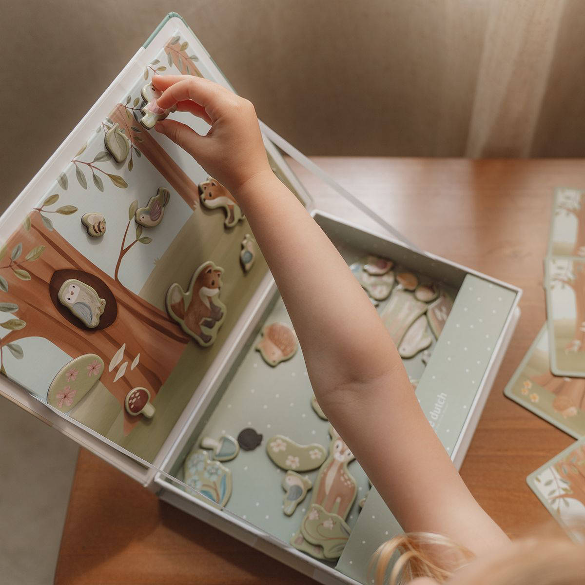 Erkunde die Wunder des verzauberten Waldes oder des amüsanten Bauernhofes mit der Little Dutch magnetischen Spieltafel. Enthülle die verborgene Magie, indem du die Szenen auf den beiliegenden Karten nachstellst und die Magnete entsprechend platzierst.