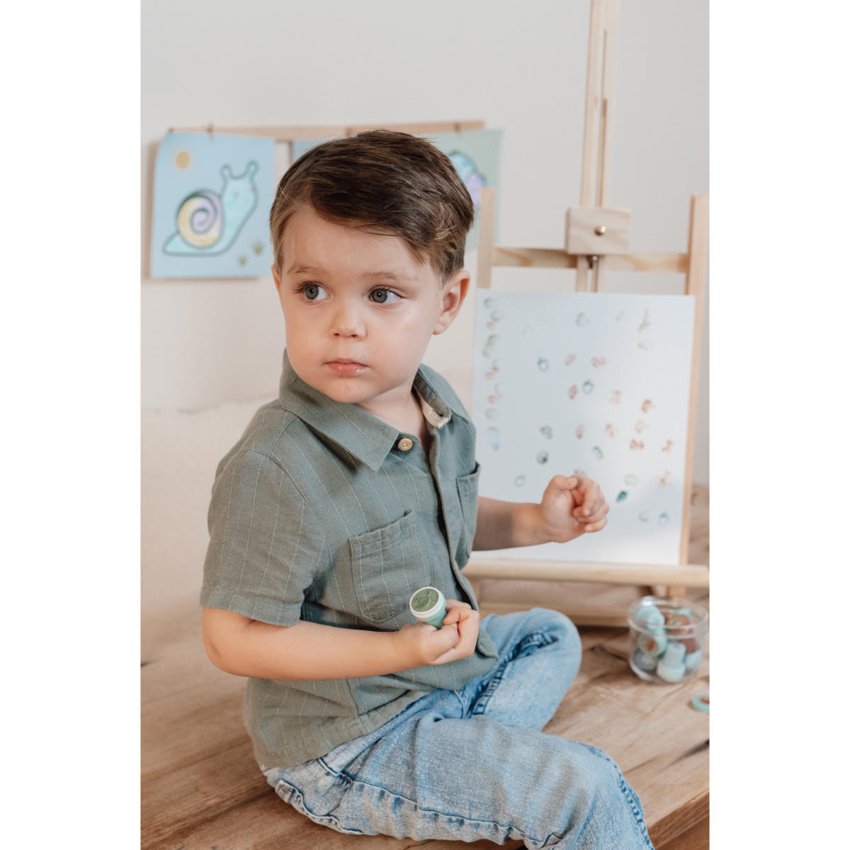 Mit dem Little Dutch Stempelset können Kinder ihrer Fantasie freien Lauf lassen! Die 16 selbstfärbenden Stempel lassen sich kinderleicht nutzen – ganz ohne zusätzliches Stempelkissen. Perfekt für kreative Bastelstunden und zur Förderung der Feinmotorik!