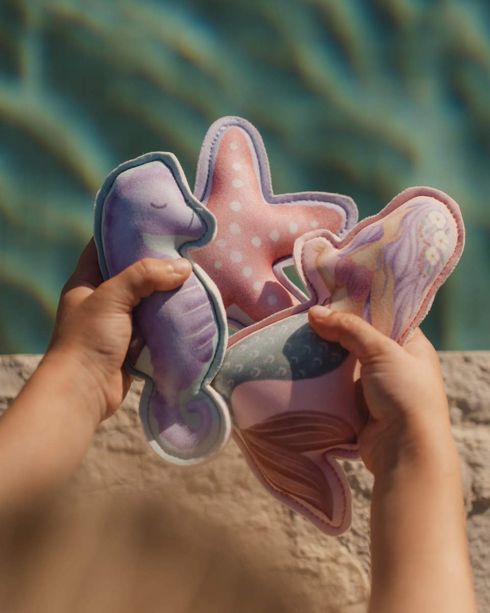 Ganz im Stil von Little Dutch besticht das Set durch sanfte Farben und eine langlebige Verarbeitung. Die drei unterschiedlichen Motive sorgen für Abwechslung und Sammelspaß beim Baden. Damit nach dem Tag am See oder Pool alles beisammen bleibt, ist eine praktische Netztasche im Lieferumfang enthalten. So ist das Spielzeug schnell verstaut und trocknet optimal für den nächsten Einsatz.