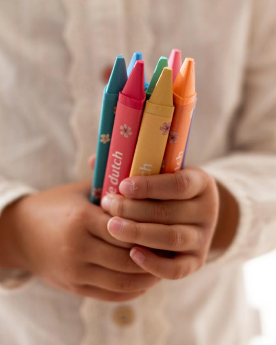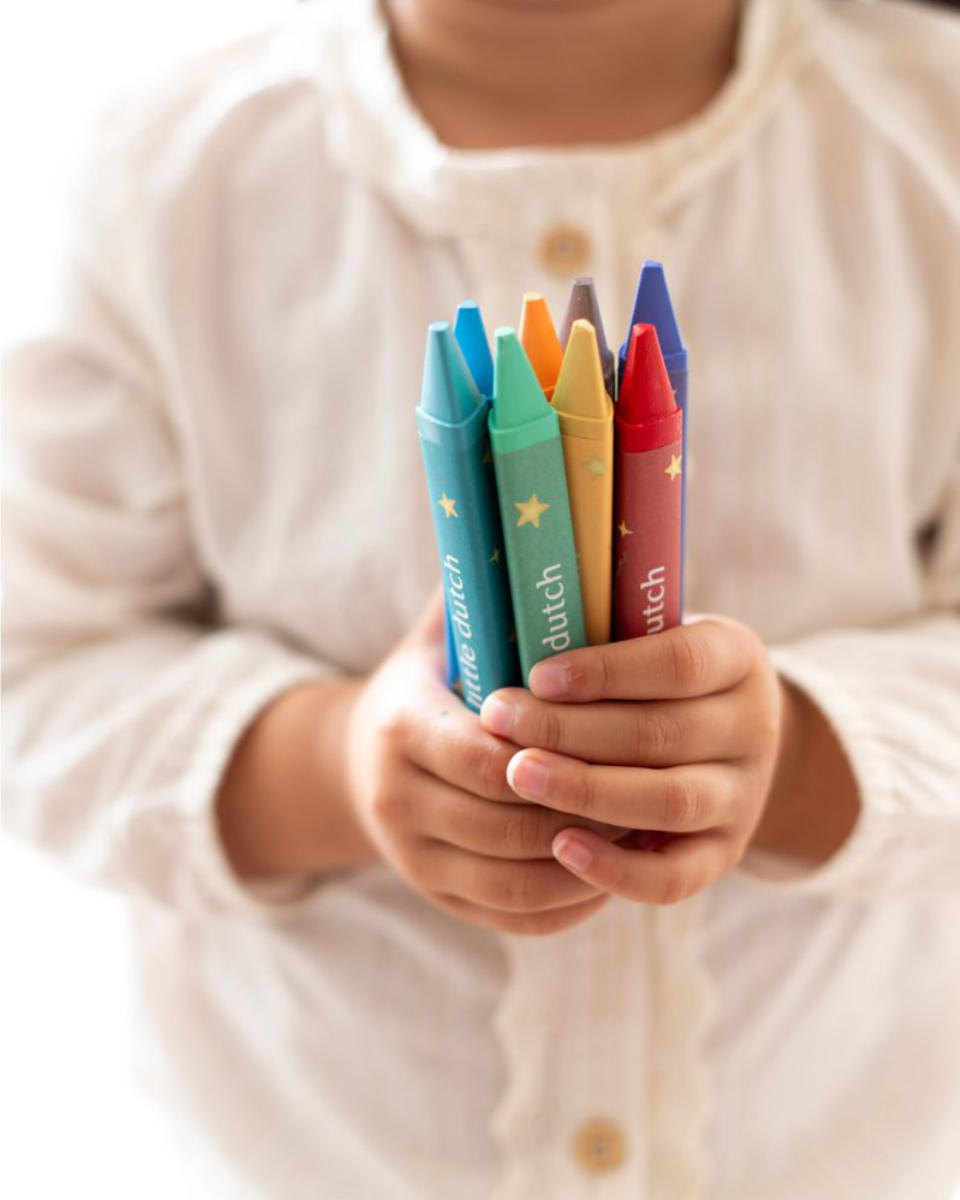 Kinder entdecken die Welt mit Farben, Formen und Fantasie. Die Little Dutch Wachsmalstifte sind dafür bestens geeignet: Sie sind leicht zu halten, angenehm zu verwenden und laden dein Kind dazu ein, kreativ zu werden – ganz ohne Druck.
