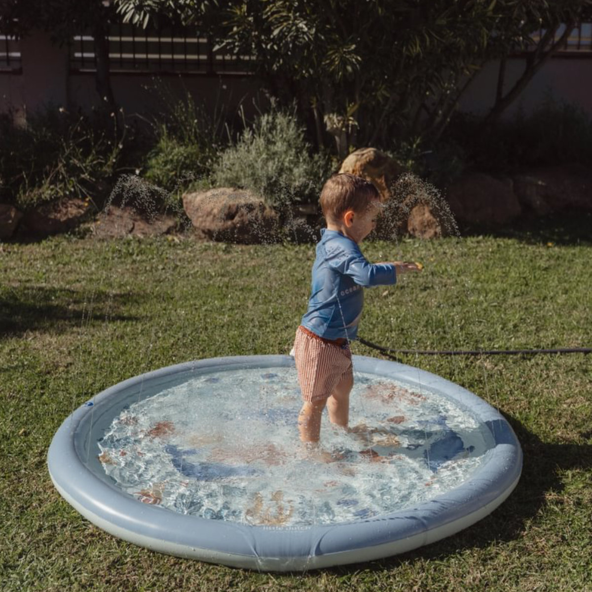Du suchst nach einer einfachen und sicheren Möglichkeit, deinem Kind an heißen Sommertagen Abkühlung zu verschaffen? Die Little Dutch Wasserspielmatte mit Sprinkler in den Designs Ocean World und Dreamy Mermaid verwandelt deinen Garten im Handumdrehen in einen kleinen Wasserspielplatz. Mit sprühenden Wasserstrahlen, fröhlichen Motiven und viel Bewegungsfreiheit sorgt sie für jede Menge Spaß.