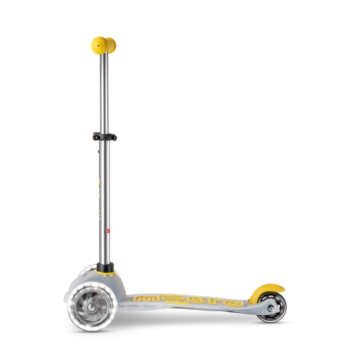 Der Mini Micro Deluxe faltbare Scooter mit LED-Rädern vereint technisches Design mit herausragender Funktionalität und ist ideal für Kinder von 2 bis 5 Jahren. Das transparente Deck, der glänzende Alu-Lenker und die leuchtenden LED-Räder ziehen alle Blicke auf sich, während dein Kind die Welt sicher erkundet.